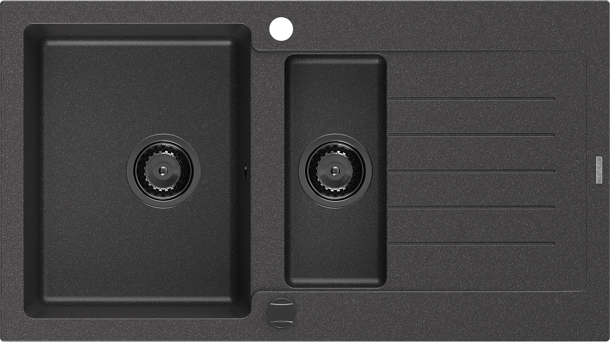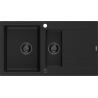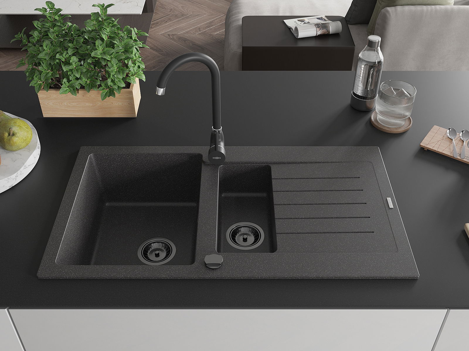 Mexen Matias žulový dřez 1,5-komorový s odkapávačem 900 x 505 mm, černý kropenatý, černý sifon - 6502901505-76-B