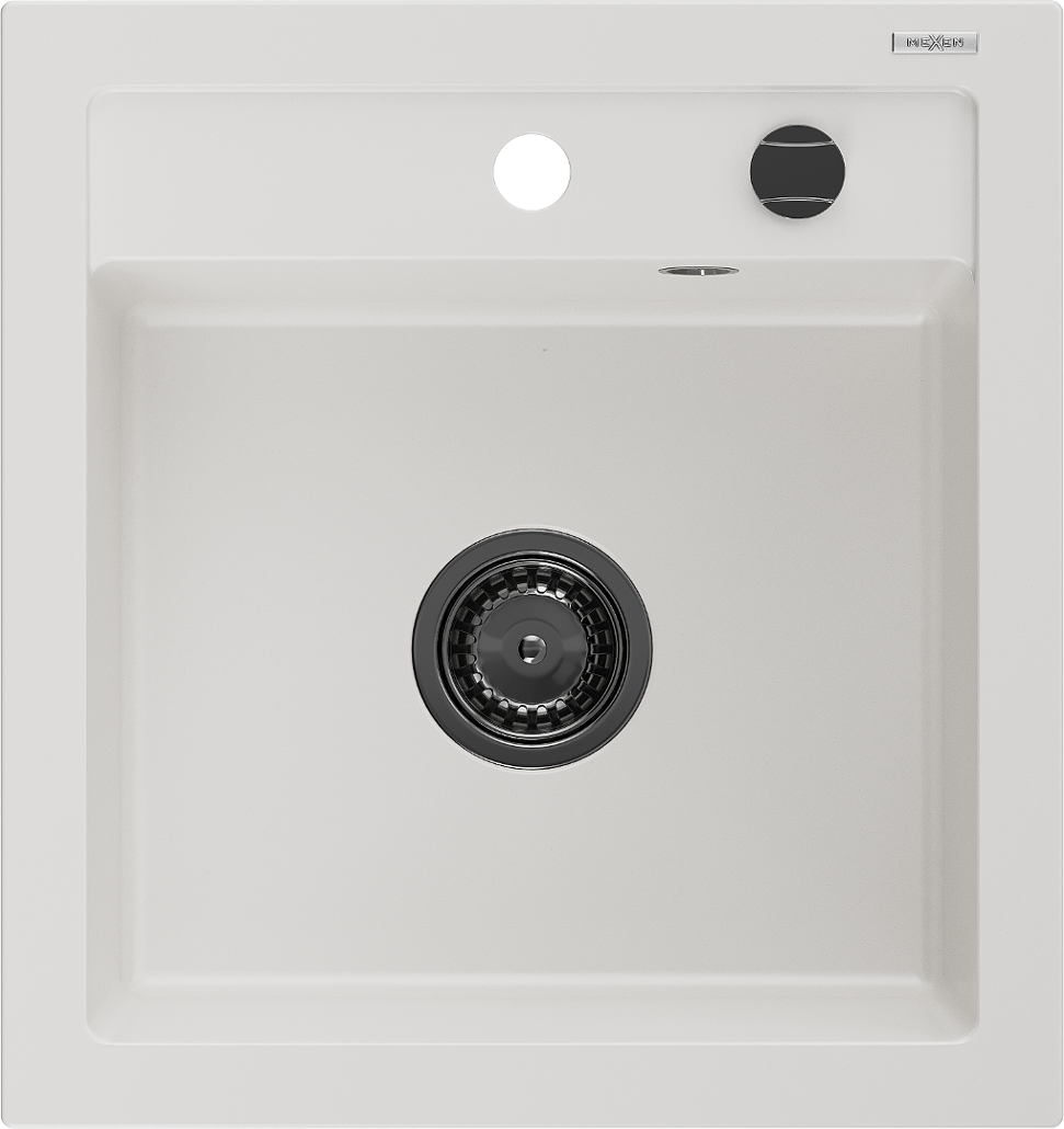 Mexen Vito dřez granitový 1-komorový 520 x 490 mm, bílý, sifon černý - 6503521000-20-B
