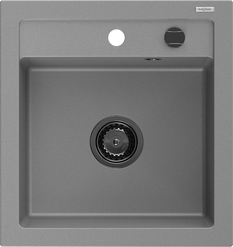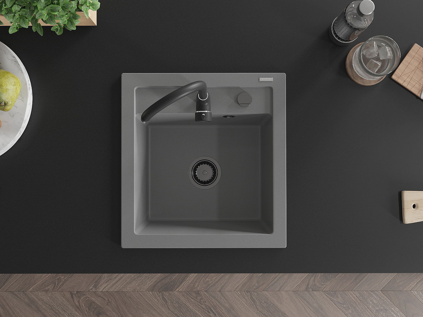 Mexen Vito granitový dřez 1-komorový 520 x 490 mm, šedý, černý sifon - 6503521000-71-B