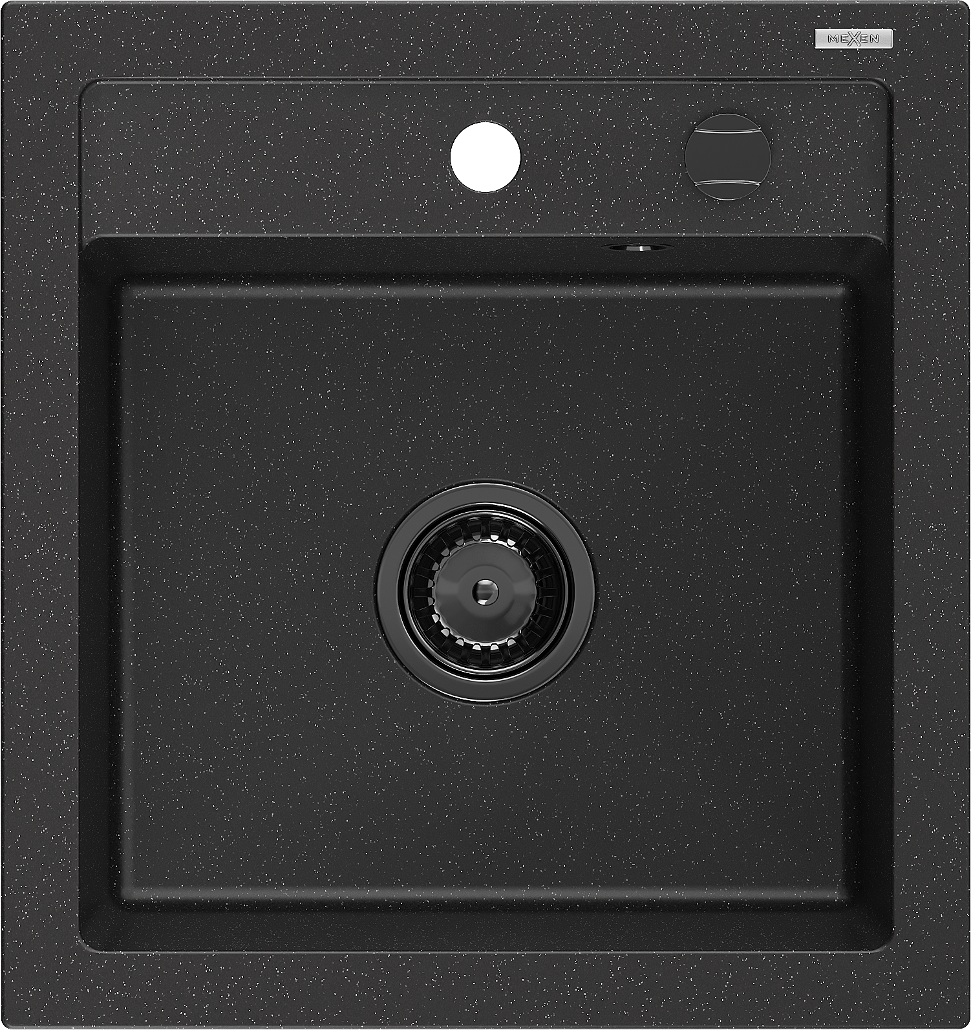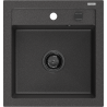 Mexen Vito granitový dřez 1-komorový 520 x 490 mm, černý/stříbrný metalický, černý sifon - 6503521000-73-B