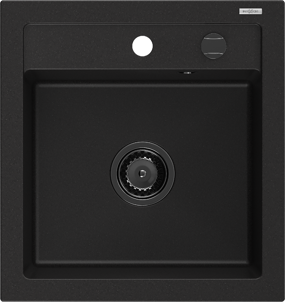 Mexen Vito granitový dřez 1-komorový 520 x 490 mm, černý, sifon černý - 6503521000-77-B
