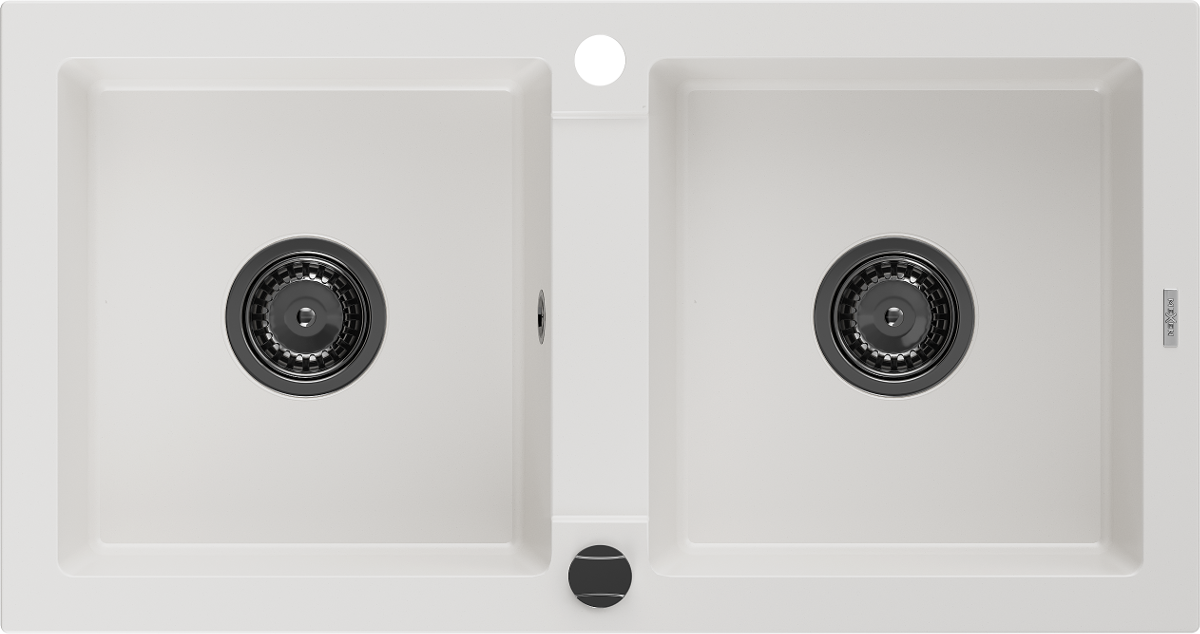 Mexen Mario dvoukomorový granitový dřez 820 x 436 mm, bílý, černý sifon - 6504822000-20-B