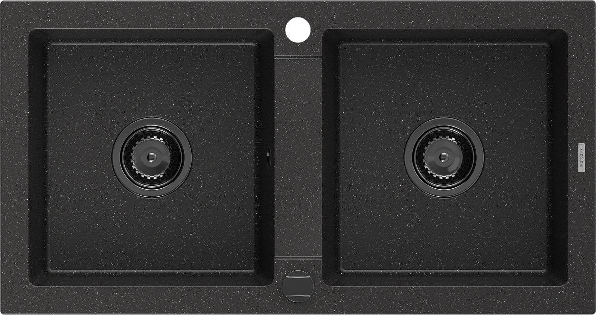 Mexen Mario dřez žulový 2-komorový 820 x 436 mm, černý/stříbrný metalík, černý sifon - 6504822000-73-B