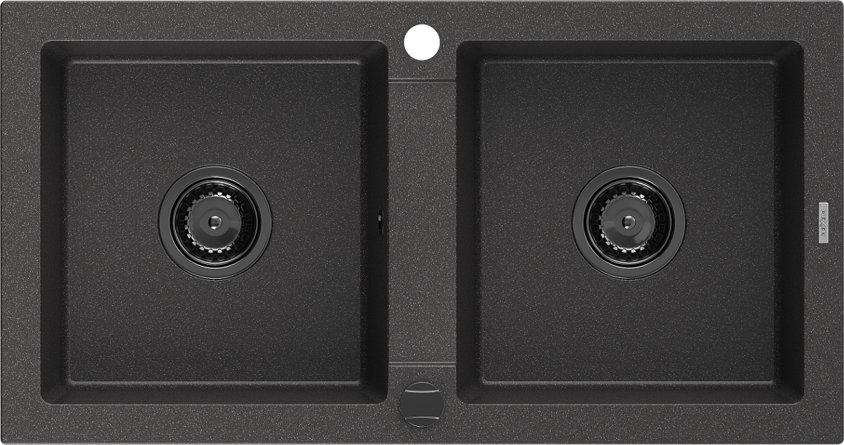 Mexen Mario granitový dřez 2-komorový 820 x 436 mm, černý skvrnitý, černý sifon - 6504822000-76-B