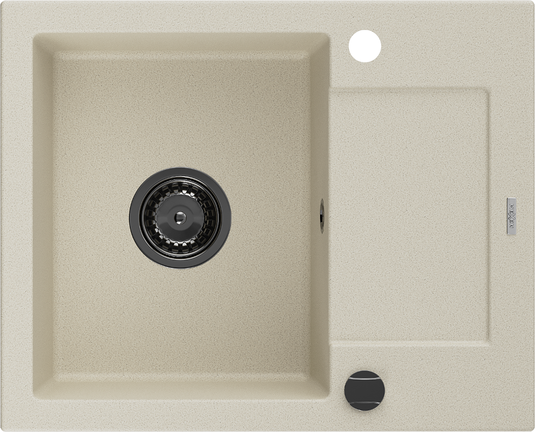 Mexen Enzo granitový jednokomorový dřez s odkapávačem 576 x 465 mm, béžový, černý sifon - 6506571005-69-B