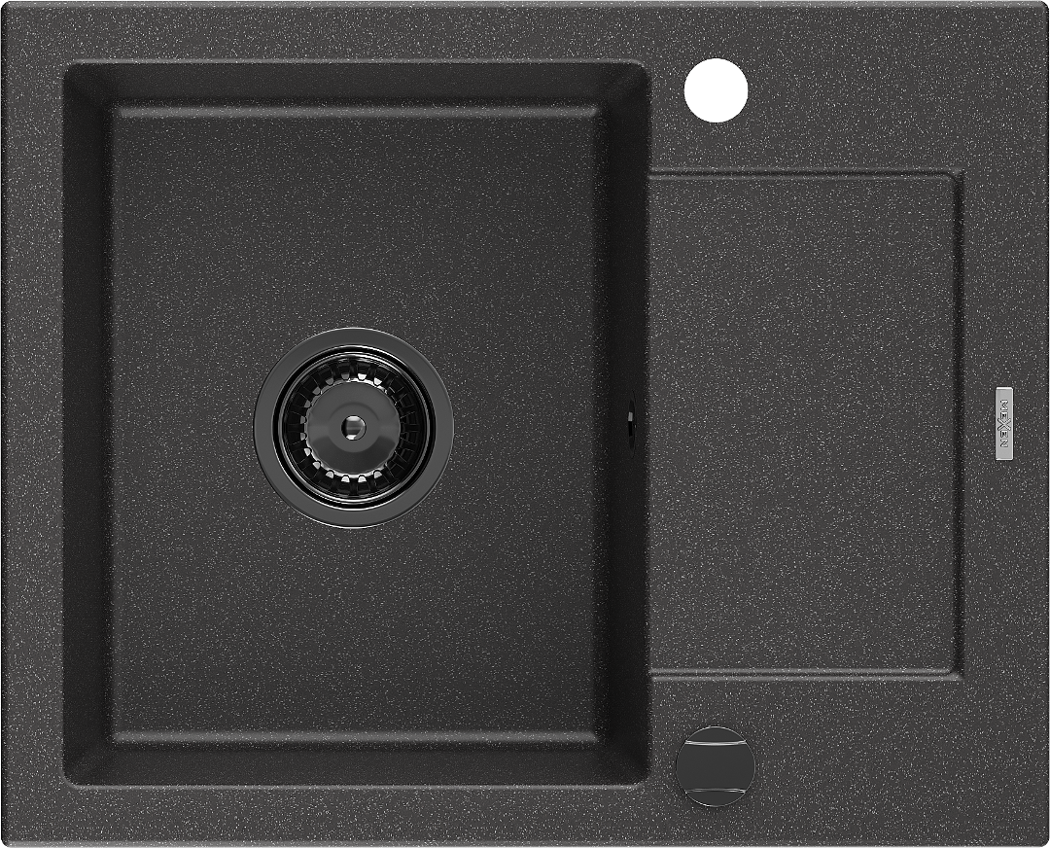 Mexen Enzo granitový dřez 1-komorový s odkapávačem 576 x 465 mm, černý s tečkami, černý sifon - 6506571005-76-B