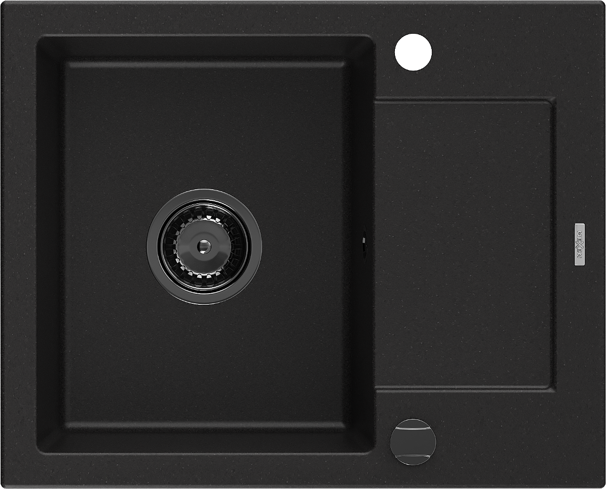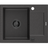 Mexen Enzo granitový dřez 1-komorový s odkapávačem 576 x 465 mm, černý, černý sifon - 6506571005-77-B