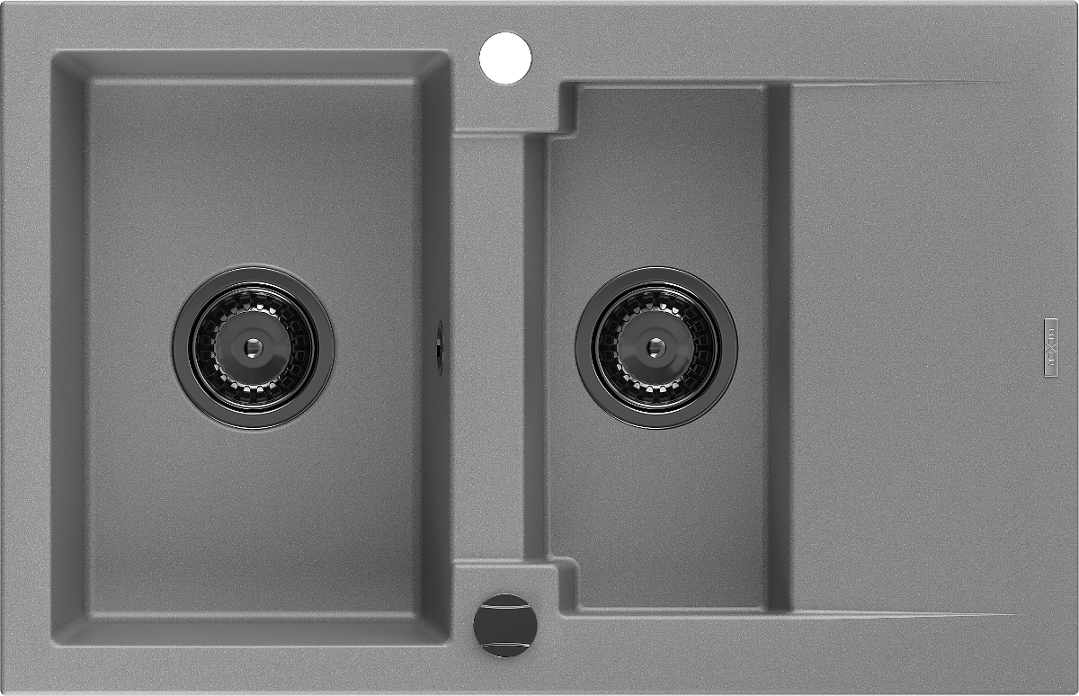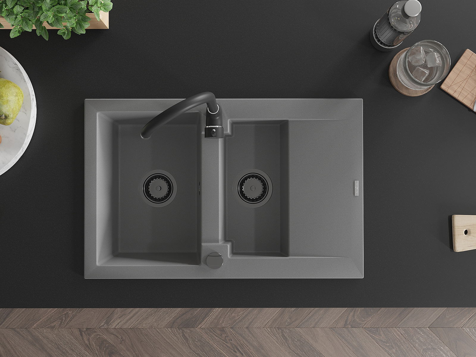 Mexen Gaspar žulový dřez 1,5-komorový s odkapávačem 737 x 475 mm, šedý, černý sifon - 6507731505-71-B
