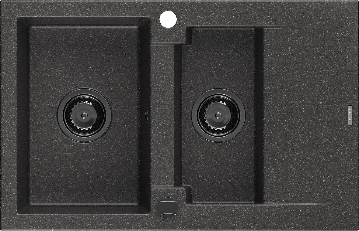 Mexen Gaspar dřez žulový 1,5-komorový s odkapávačem 737 x 475 mm, černý skvrnitý, sifon černý - 6507731505-76-B