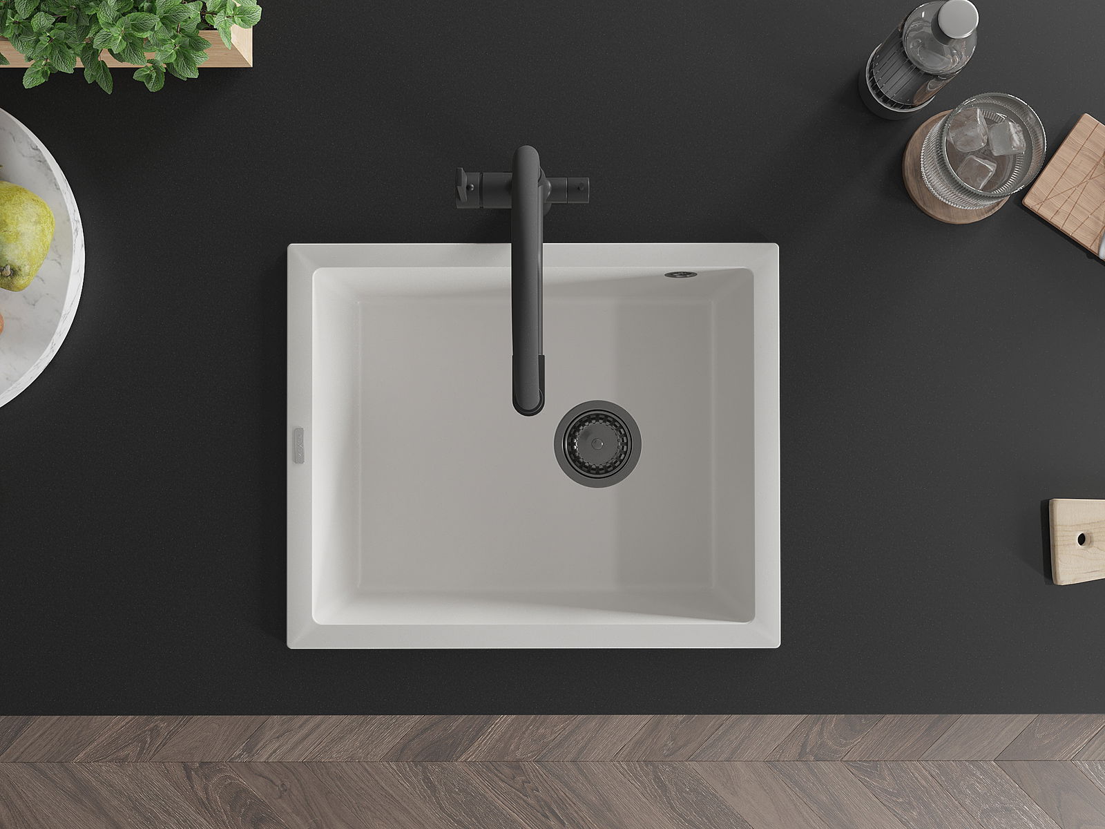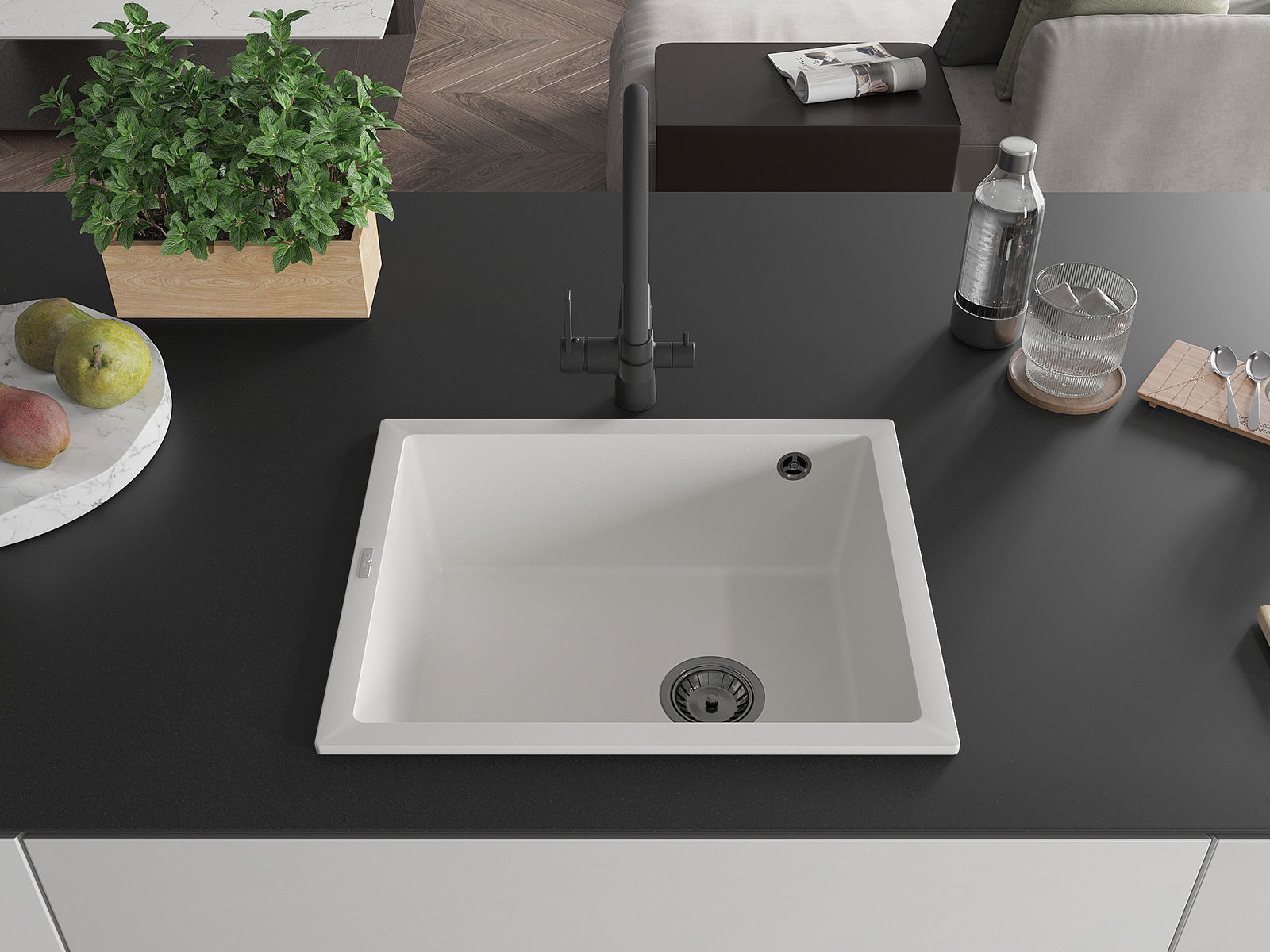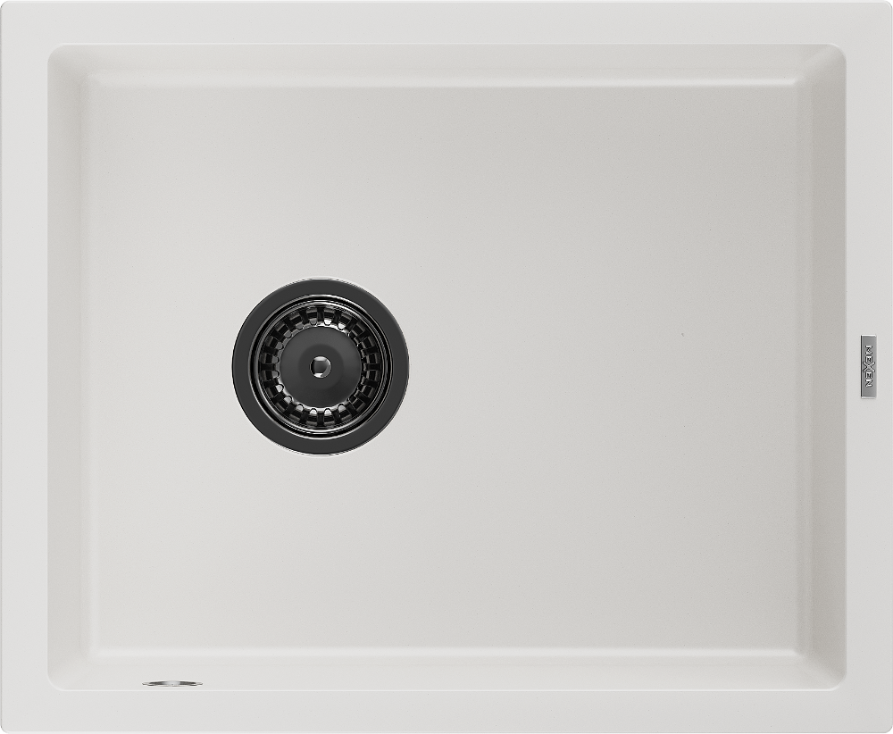 Mexen Pedro granitový dřez 1-komorový 560 x 460 mm, bílý, černý sifon - 6508561000-20-B
