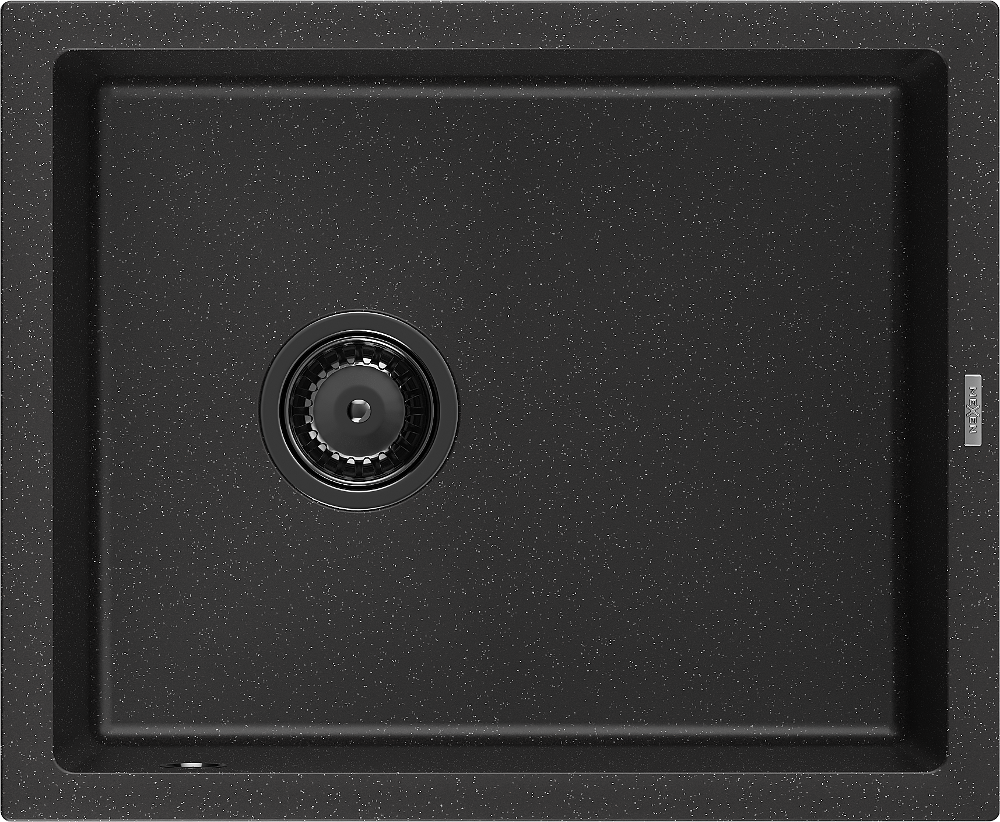 Mexen Pedro žulový kuchyňský dřez 1-komorový 560 x 460 mm, černý/stříbrný metalik, černý sifon - 6508561000-73-B