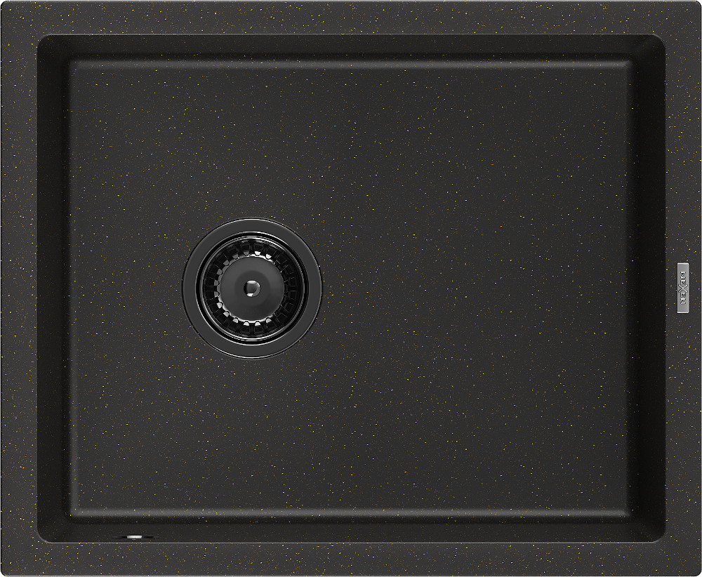 Mexen Pedro žulový dřez s 1 komorou 560 x 460 mm, černý/zlatý metalik, černý sifon - 6508561000-75-B