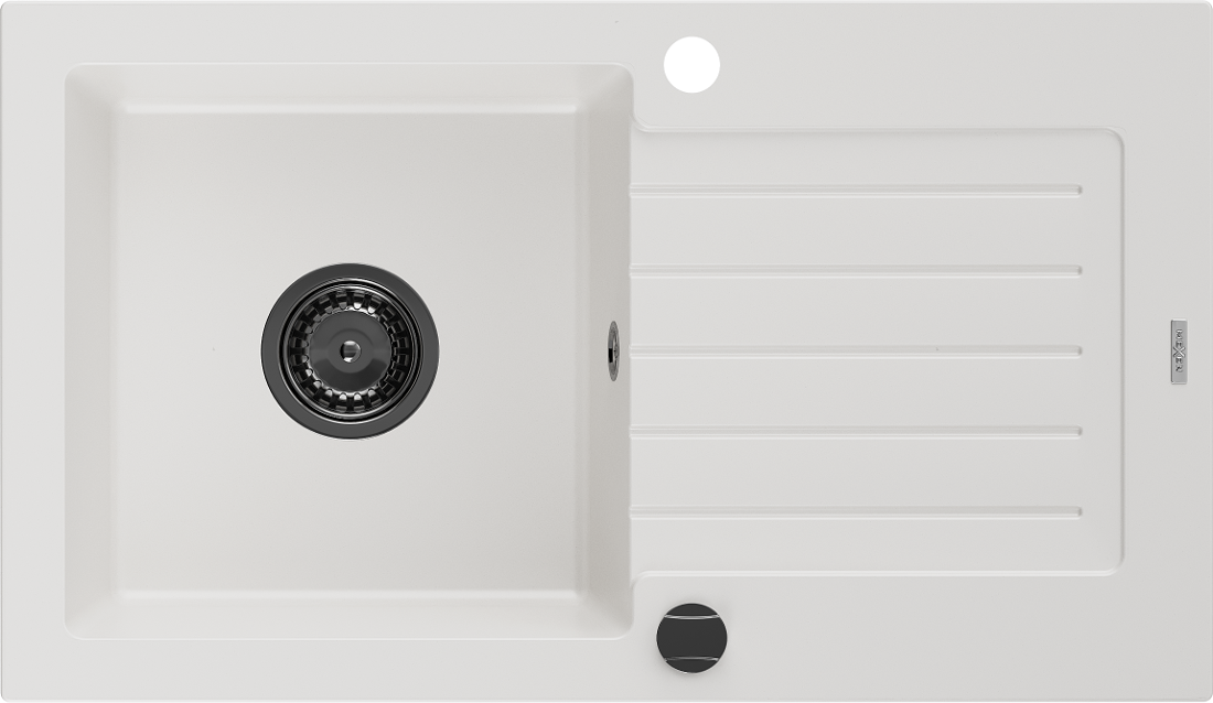 Mexen Pablo granitový dřez 1-komorový s odkapávačem 752 x 436 mm, bílý, černý sifon - 6510751010-20-B