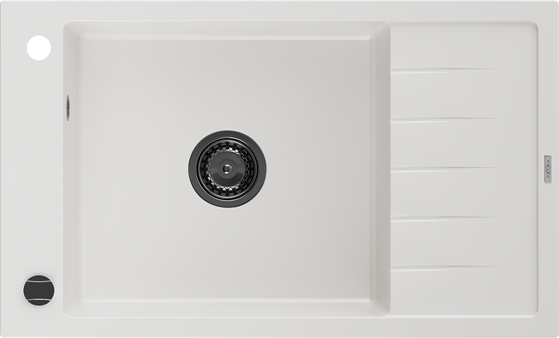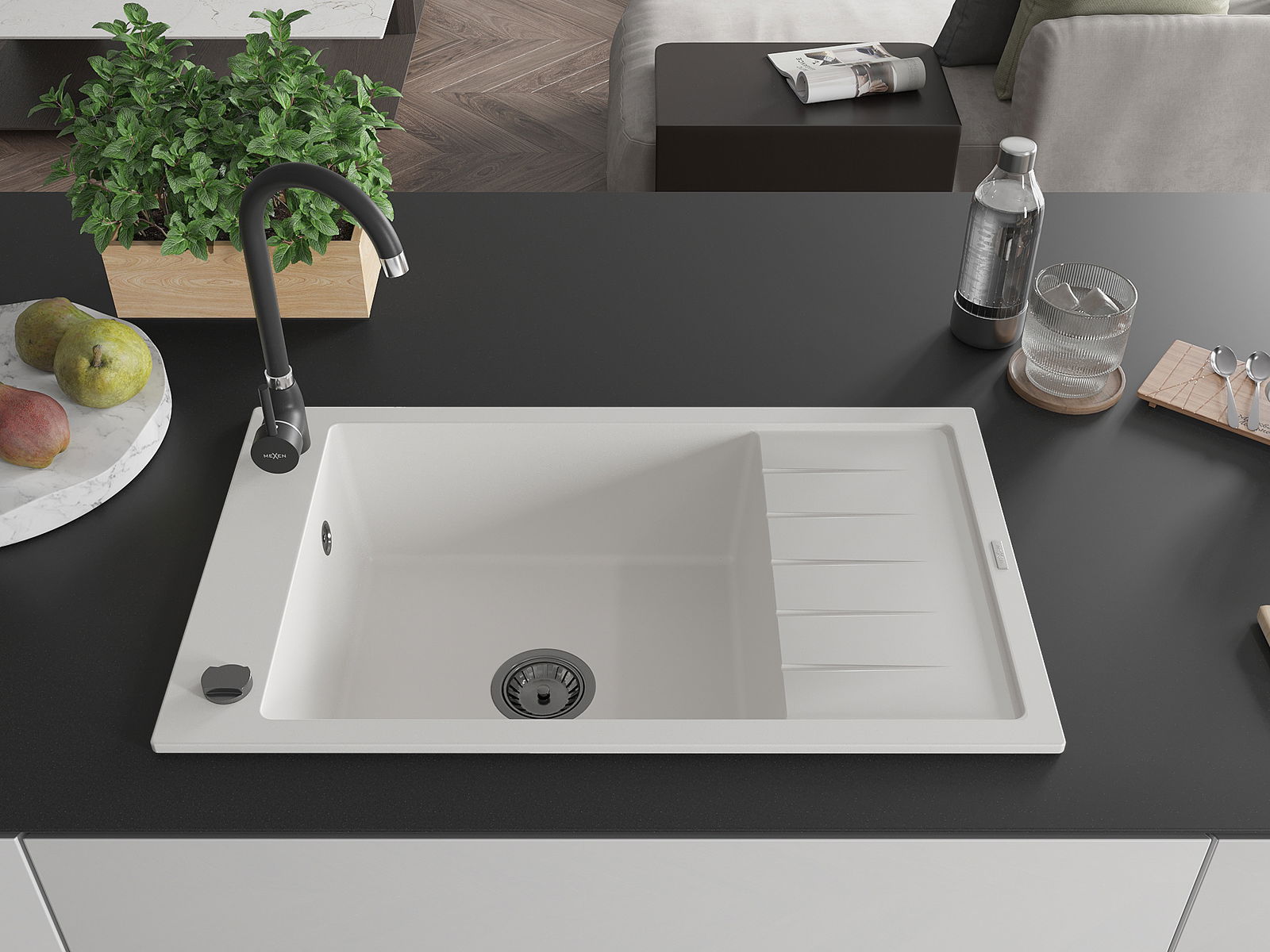 Mexen Elias granitový dřez 1-komorový s odkapávačem 795 x 480 mm, bílý, černý sifon - 6511791005-20-B