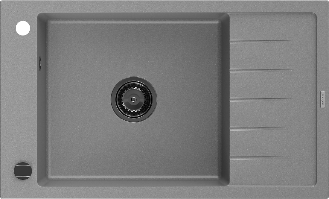 Mexen Elias 1-komorový žulový dřez s odkapávačem 795 x 480 mm, šedý, černý sifon - 6511791005-71-B