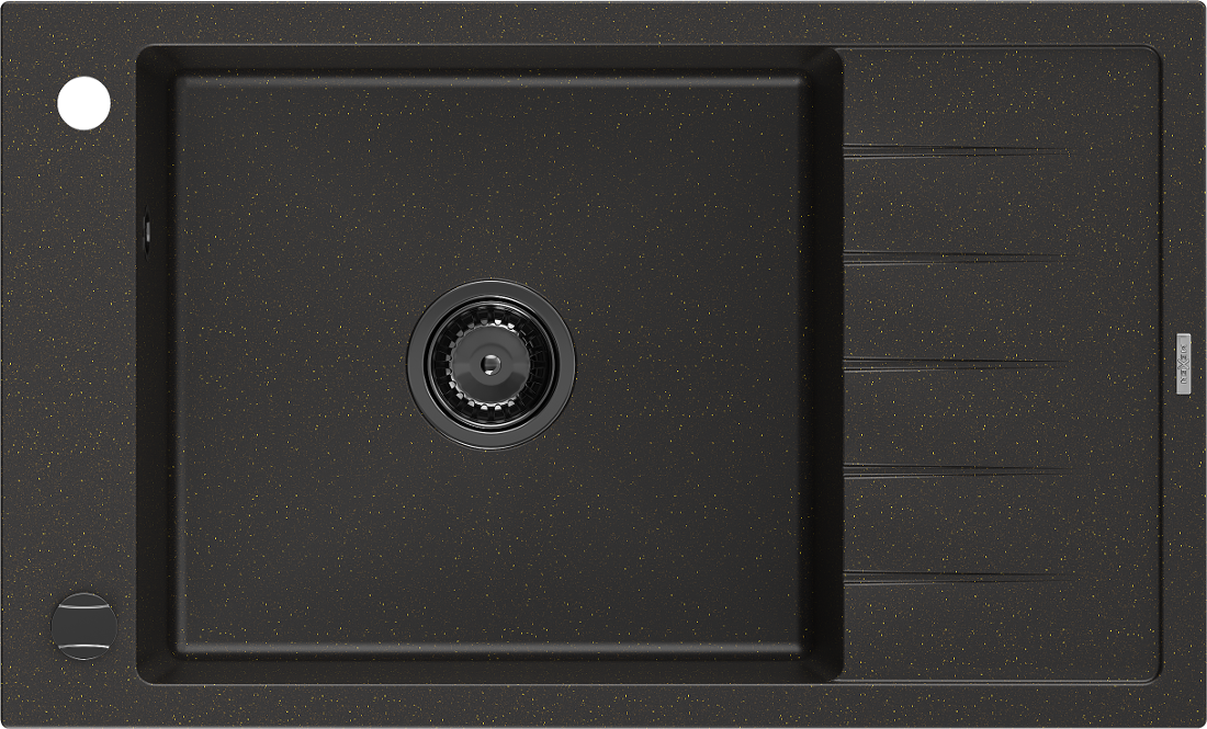 Mexen Elias granitový dřez 1-komorový s odkapávačem 795 x 480 mm, černý/zlatý metalik, černý sifon - 6511791005-75-B