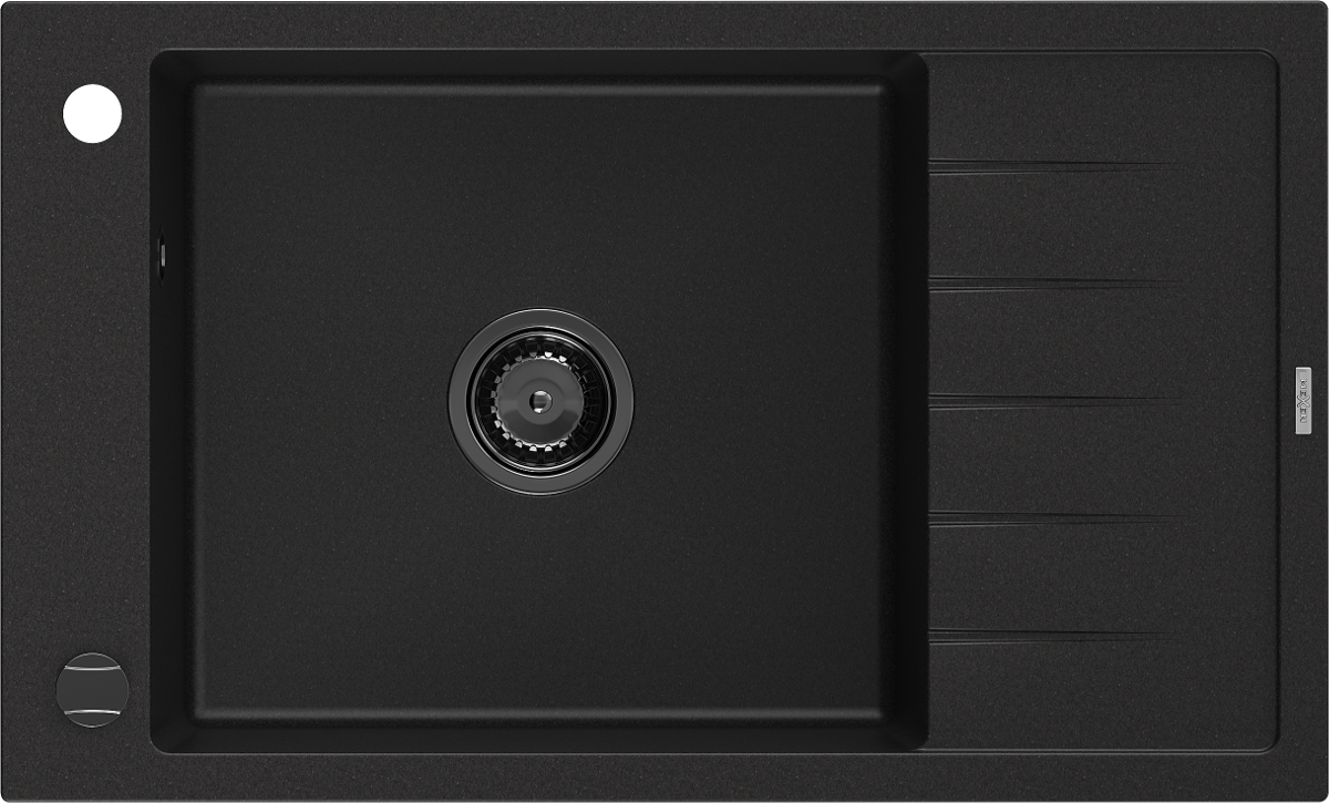 Mexen Elias granitový dřez 1-komorový s odkapávačem 795 x 480 mm, černý, černý sifon - 6511791005-77-B