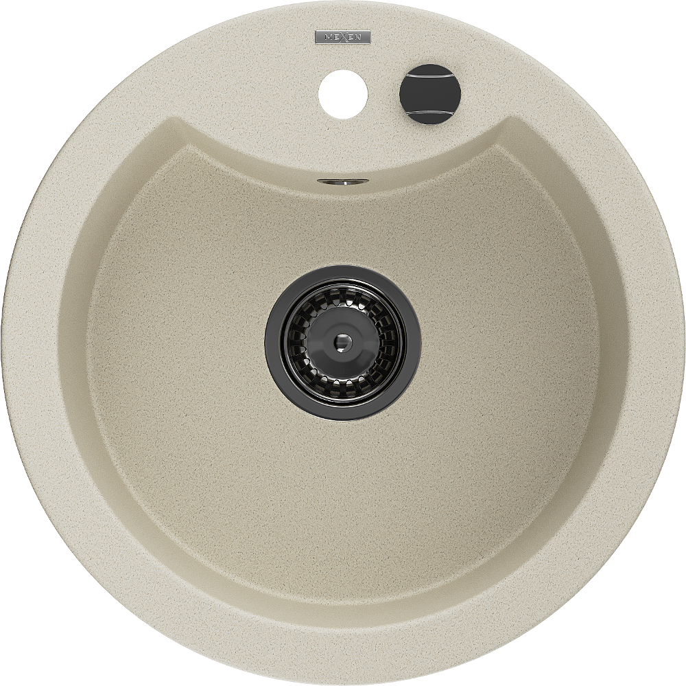 Mexen Diego granitový dřez 1-komorový 488 x 480 mm, béžový, černý sifon - 6512481000-69-B