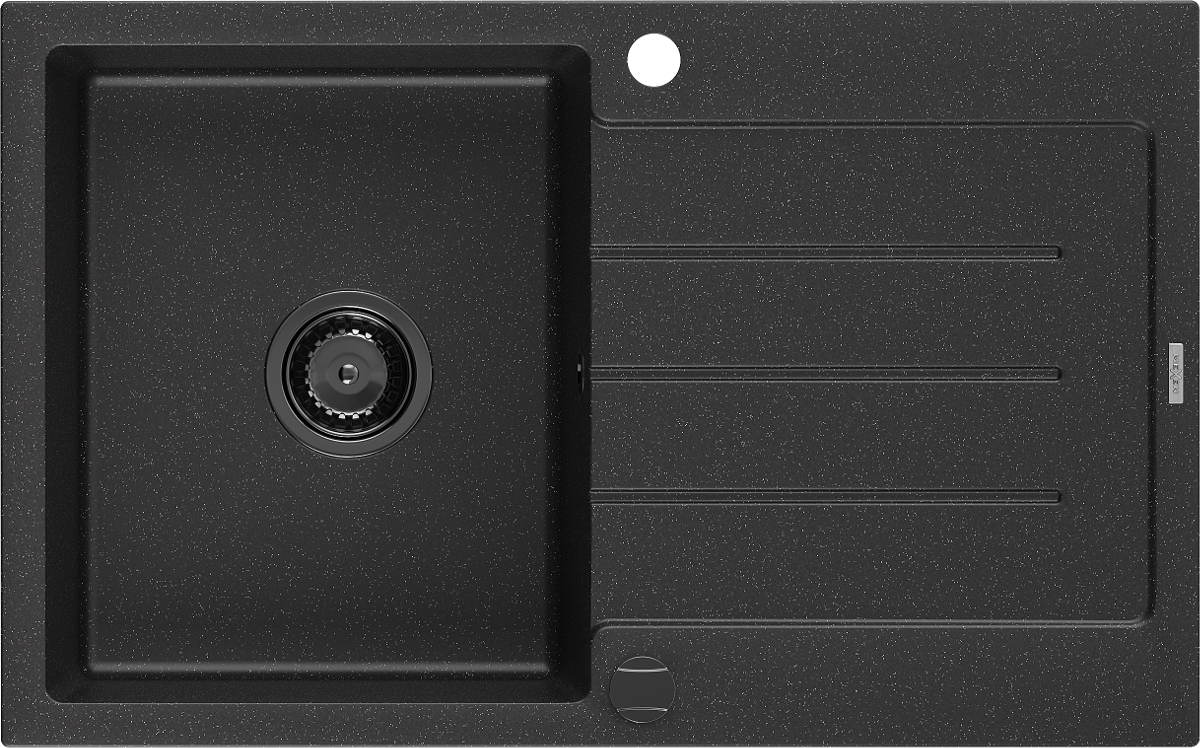 Mexen Bruno granitový dřez s odkapávačem 1-komorový 795 x 495 mm, černý/stříbrný metalik, černý sifon - 6513791010-73-B