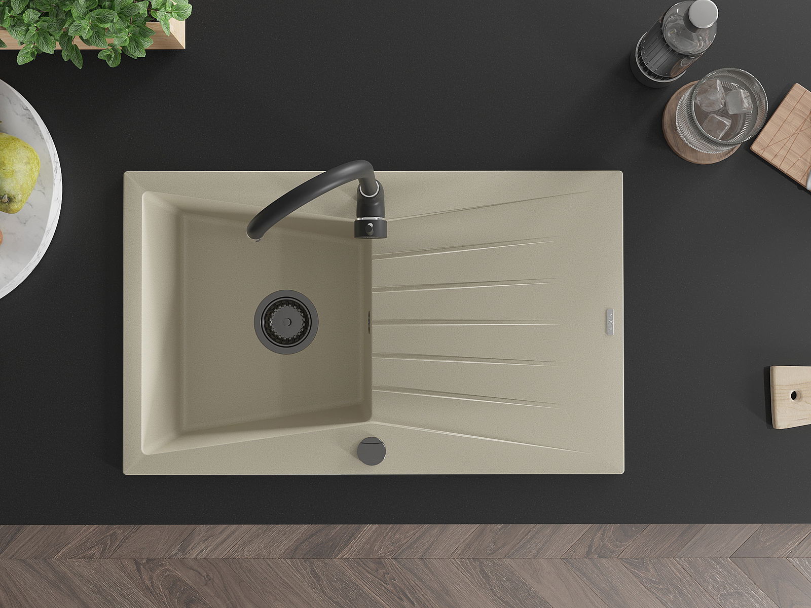 Mexen Cesar granitový dřez 1-komorový s odkapávačem 775 x 470 mm, béžový, černý sifon - 6514771010-69-B