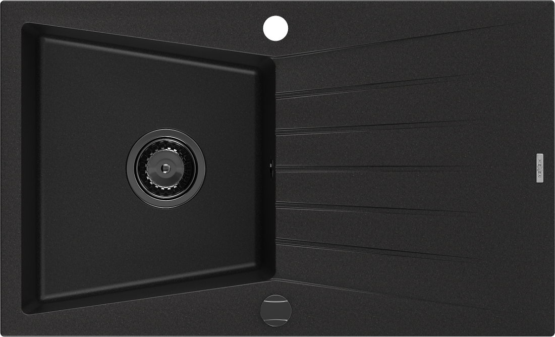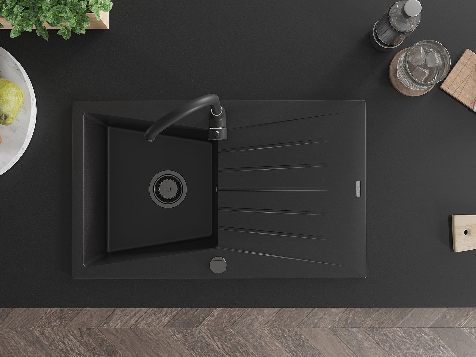 Mexen Cesar dřez granitový 1-komorový s odkapávačem 775 x 470 mm, černý, sifon černý - 6514771010-77-B