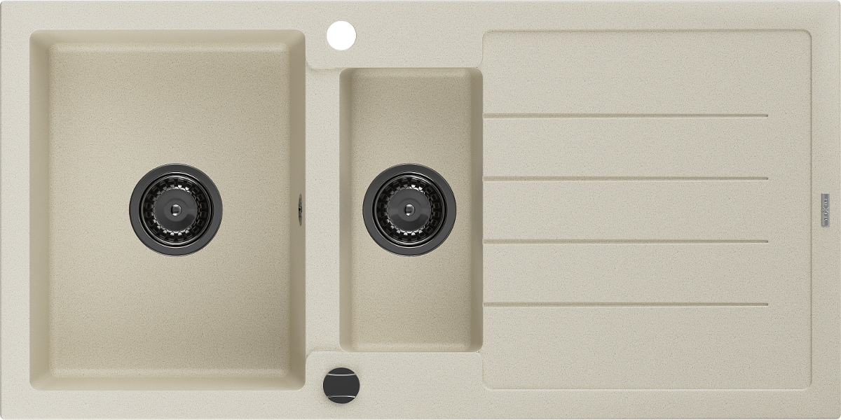 Mexen Andres granitový dřez 1,5-komorový s odkapávačem 1000 x 500 mm, béžový, sifon černý - 6515101510-69-B