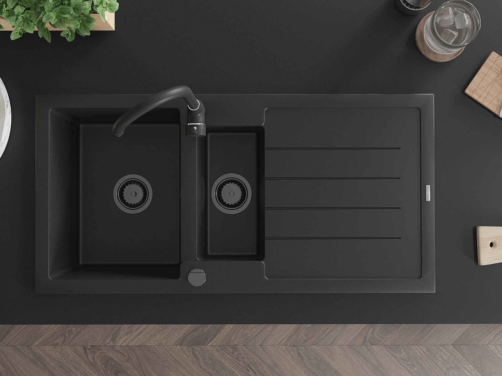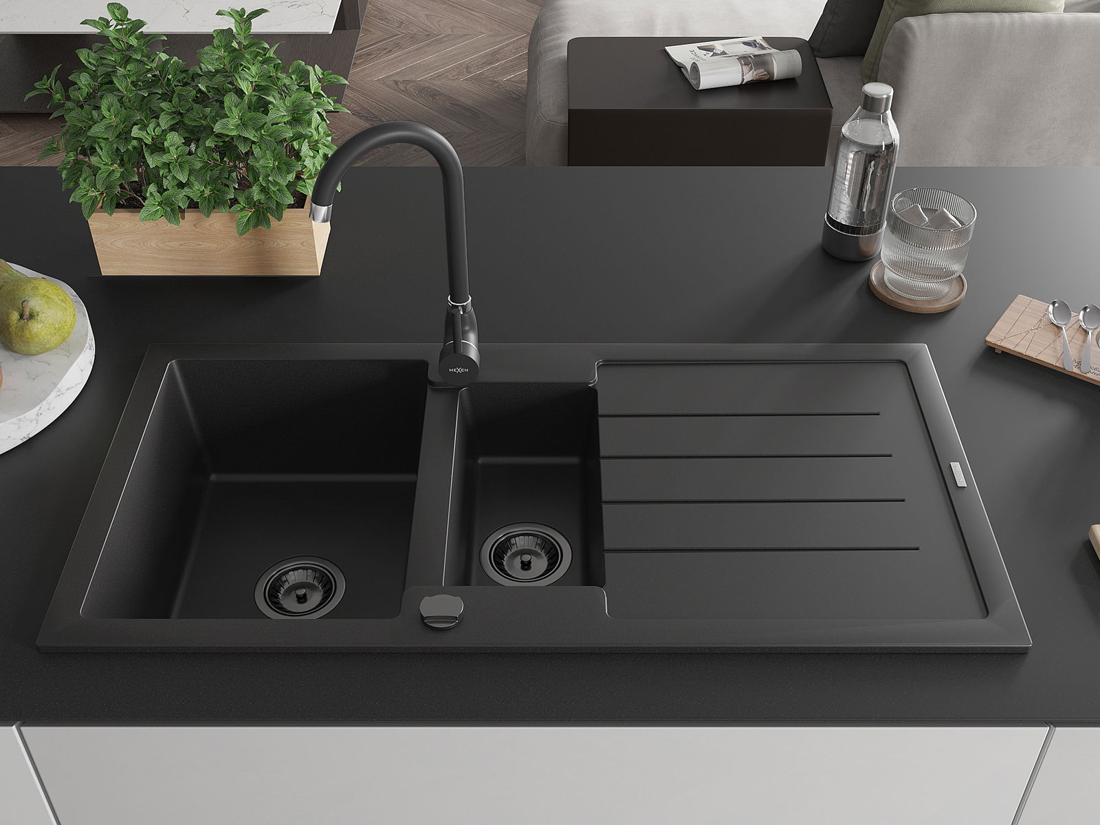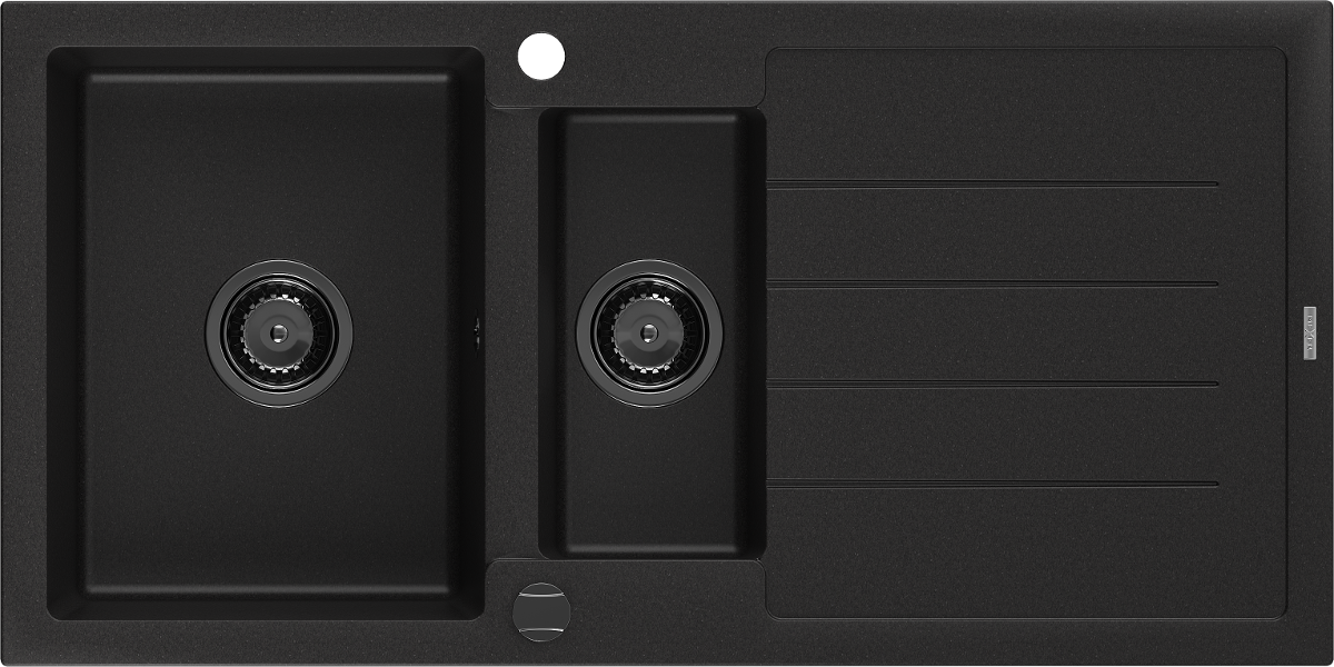 Mexen Andres dřez granitový 1,5-komorový s odkapávačem 1000 x 500 mm černý, sifon černý - 6515101510-77-B