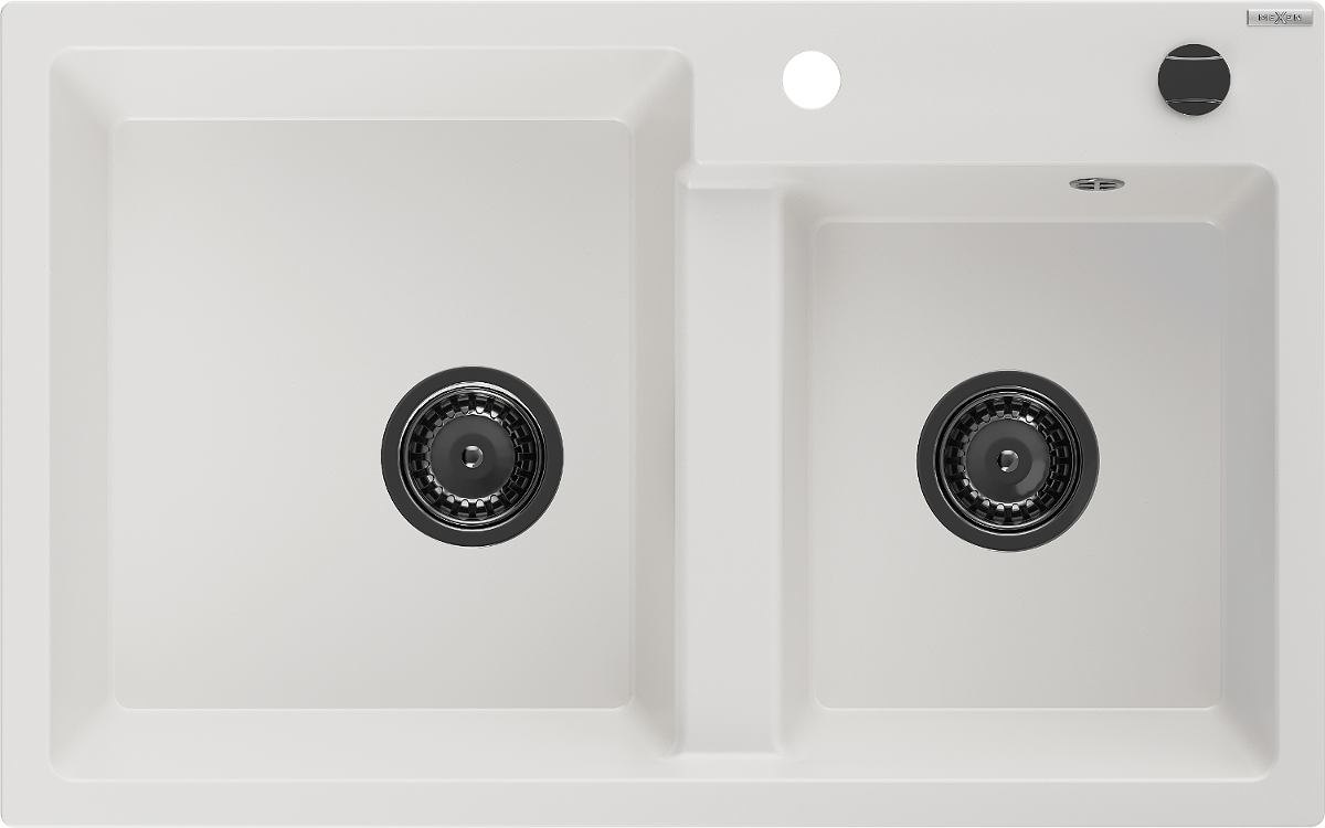 Mexen Tomas granitový dřez 2-komorový 800 x 500 mm, bílý, černý sifon - 6516802000-20-B