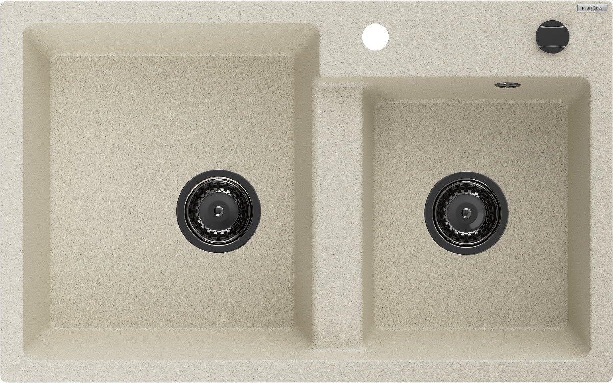 Mexen Tomas granitový dřez s 2 komorami 800 x 500 mm, béžový, černý sifon - 6516802000-69-B