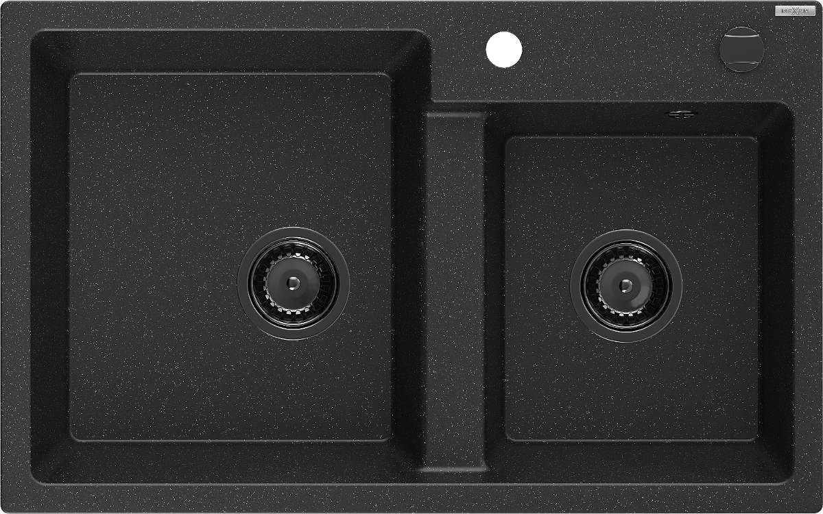 Mexen Tomas žulový dřez dvoukomorový 800 x 500 mm, černý/stříbrný metalík, černý sifon - 6516802000-73-B