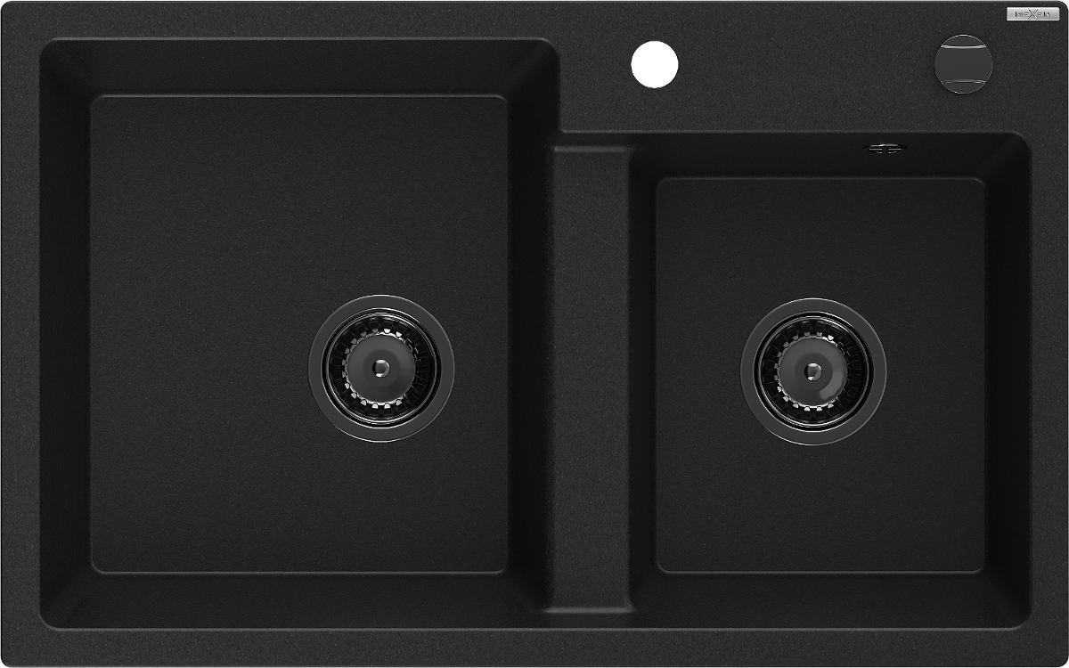 Mexen Tomas dřez granitový 2-komorový 800 x 500 mm, černý, sifon černý - 6516802000-77-B