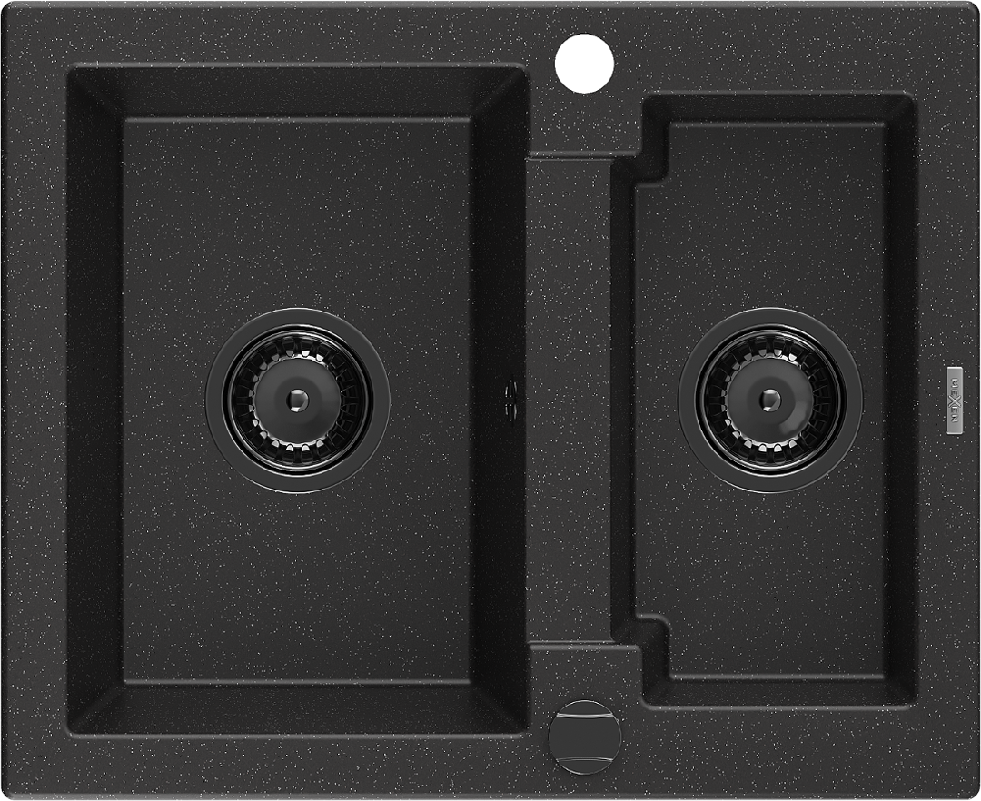 Mexen Carlos žulový dřez 1,5-komorový 582 x 475 mm, černý/stříbrný metalik, černý sifon - 6518581500-73-B