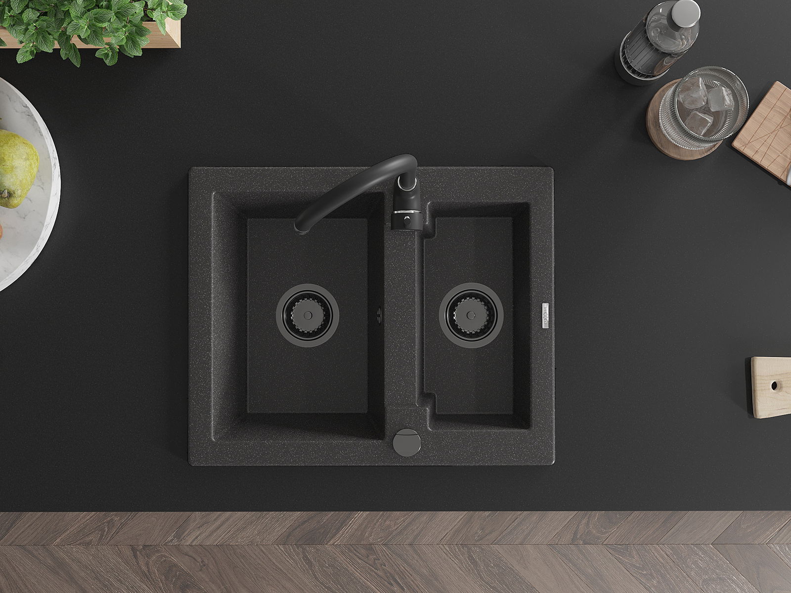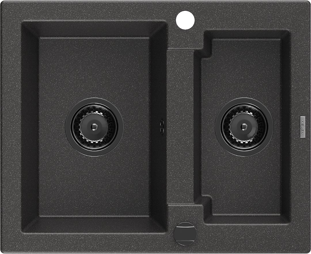 Mexen Carlos dřez žulový 1,5-komorový 582 x 475 mm, černý s barevnými skvrnami, černý sifon - 6518581500-76-B