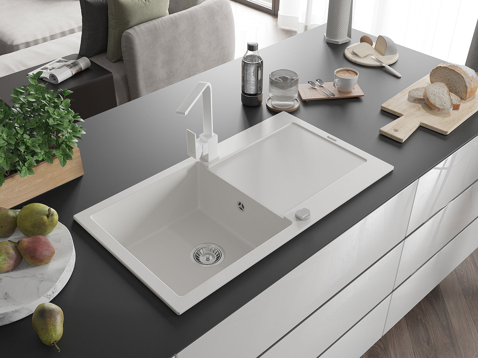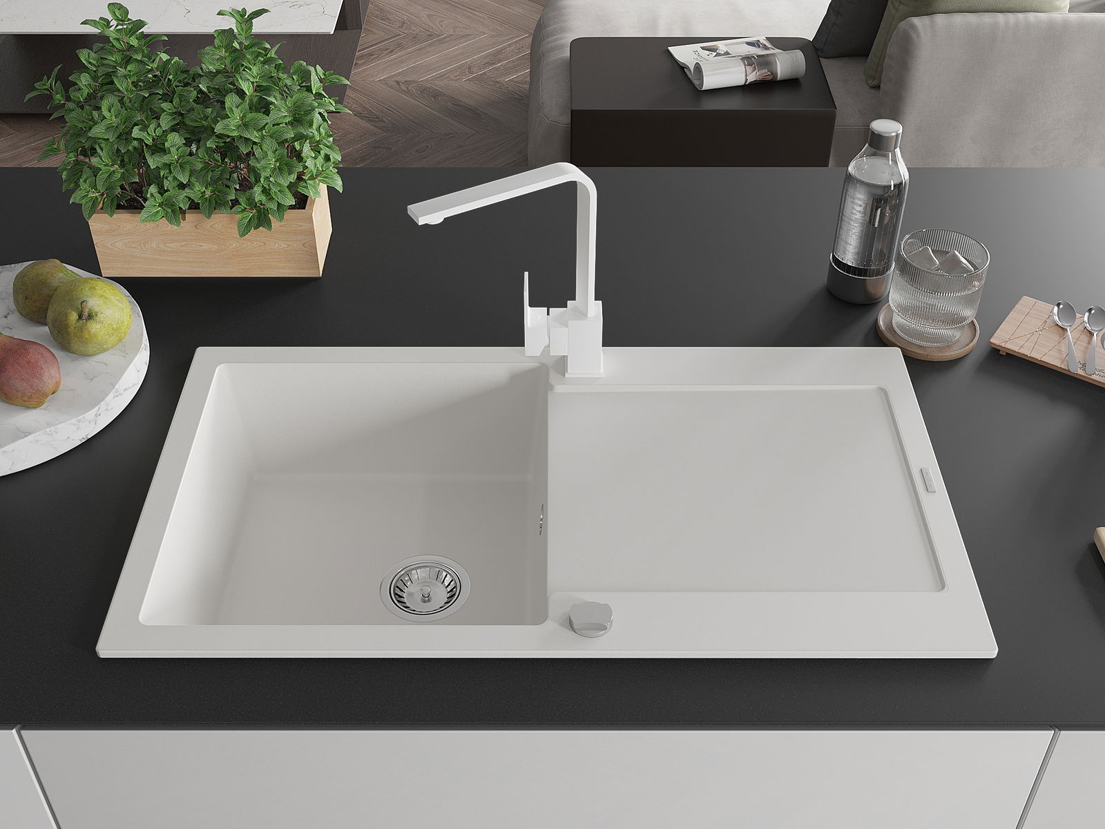 Dřez byl vyroben z vysoce kvalitního granitu. Představuje elegantní a především praktický doplněk každé kuchyně, bez ohledu na její styl. Vysoká kvalita a trvanlivost granitu zajišťují dlouholeté používání.