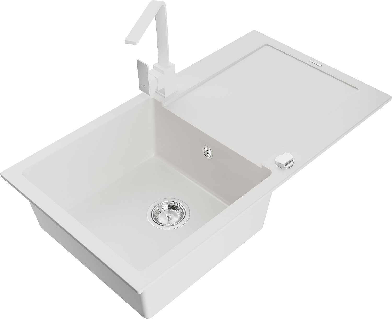 Mexen Leo granitový dřez 1-komorový s odkapávačem a kuchyňskou baterií Rita, bílý - 6501-20-670300-20