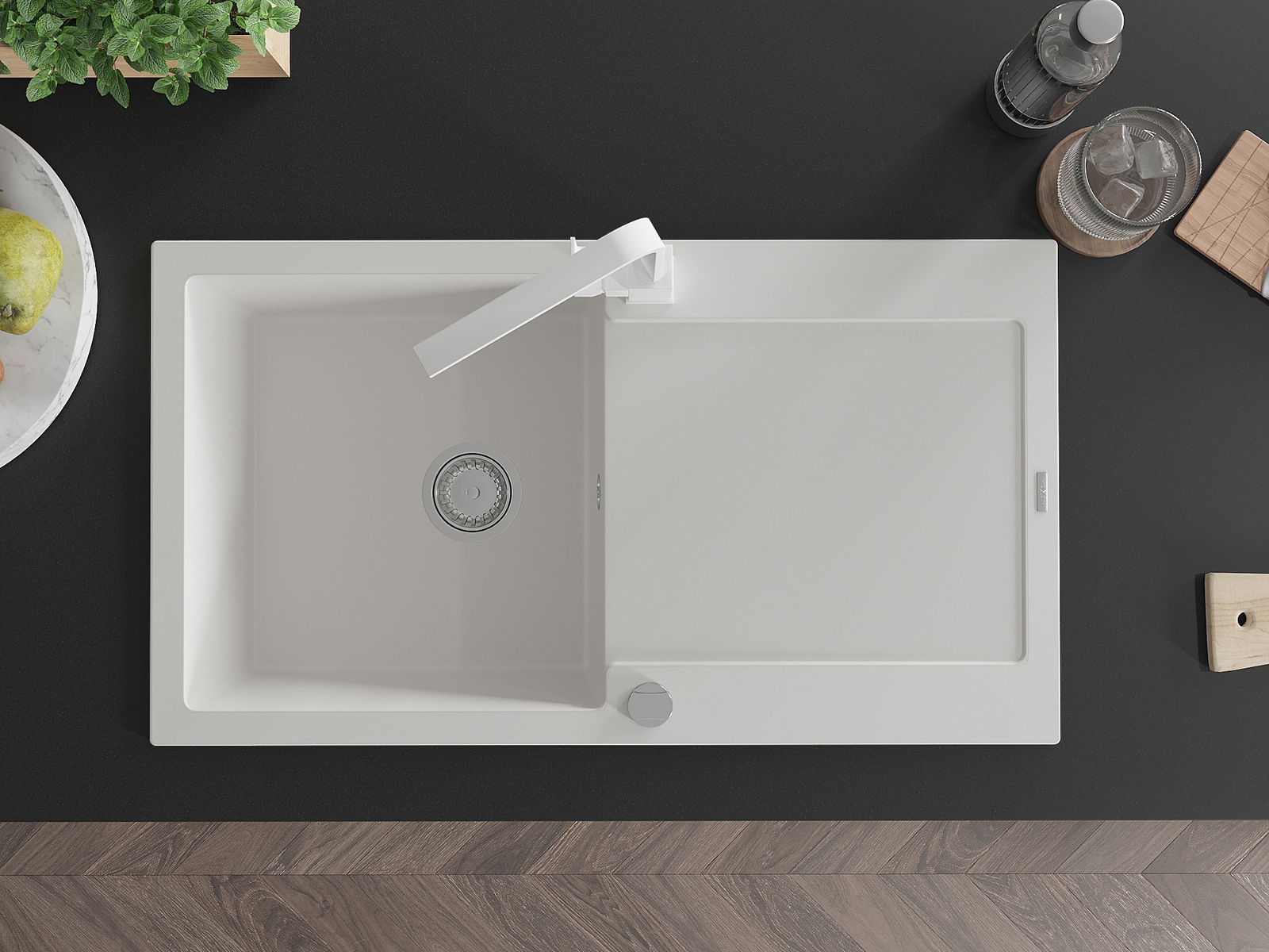 Povrch dřezu je velmi dobře vytvrzený, vyznačuje se výjimečnou odolností proti mechanickému poškození a poškrábání. Trvanlivý materiál umožňuje užívat si dobrý vzhled dřezu po mnoho let používání.