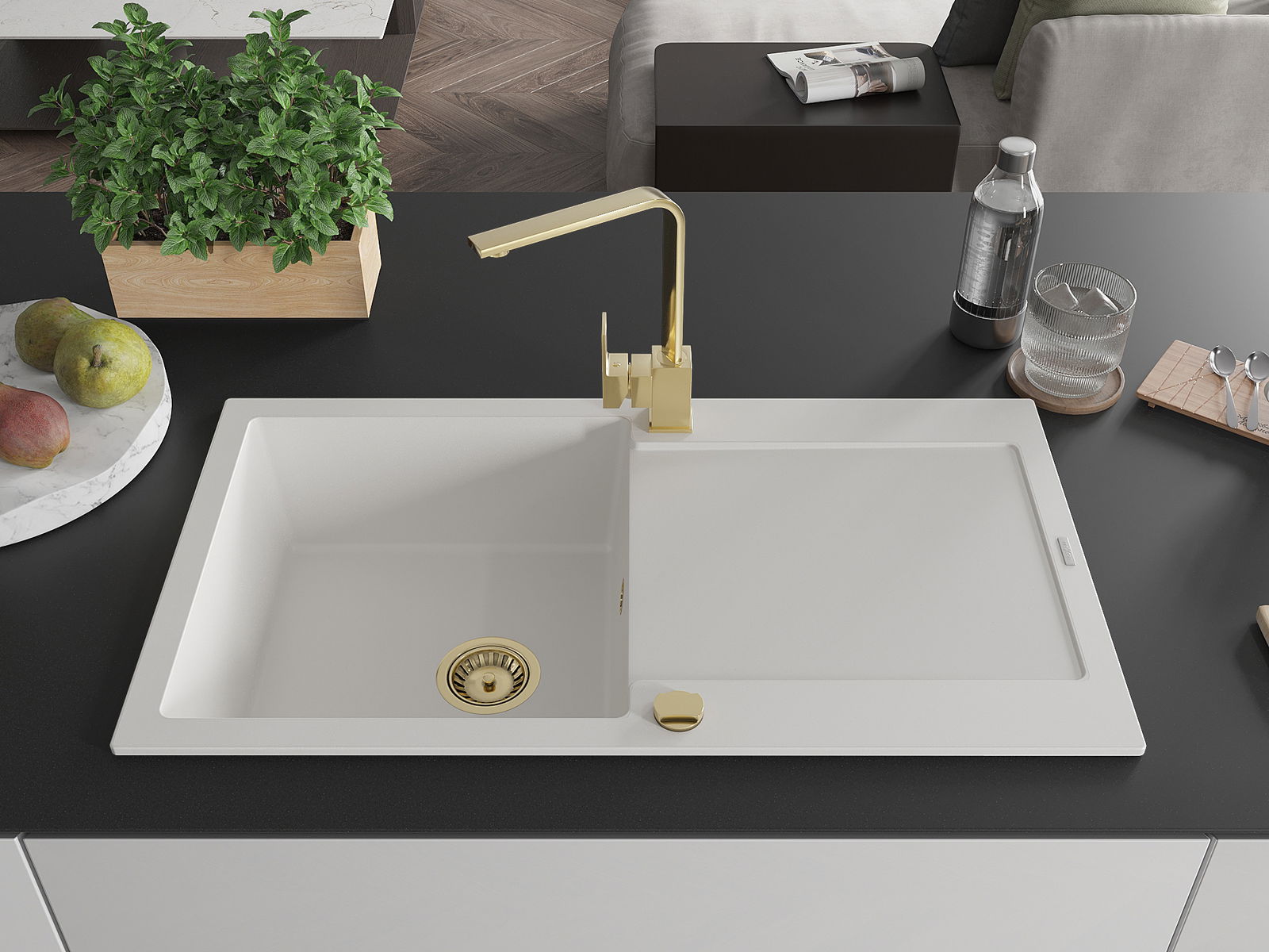 Dřez byl vyroben z vysoce kvalitního granitu. Představuje elegantní a především praktický doplněk každé kuchyně, bez ohledu na její styl. Vysoká kvalita a trvanlivost granitu zajišťují dlouholeté používání.