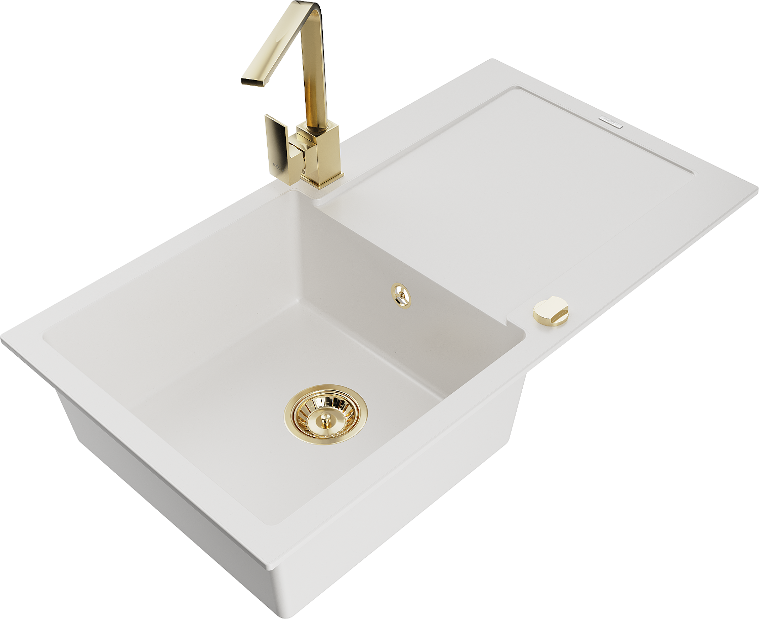 Mexen Leo granitový dřez 1-komorový s odkapávačem a kuchyňskou baterií Rita, bílý - 6501-20-670300-50