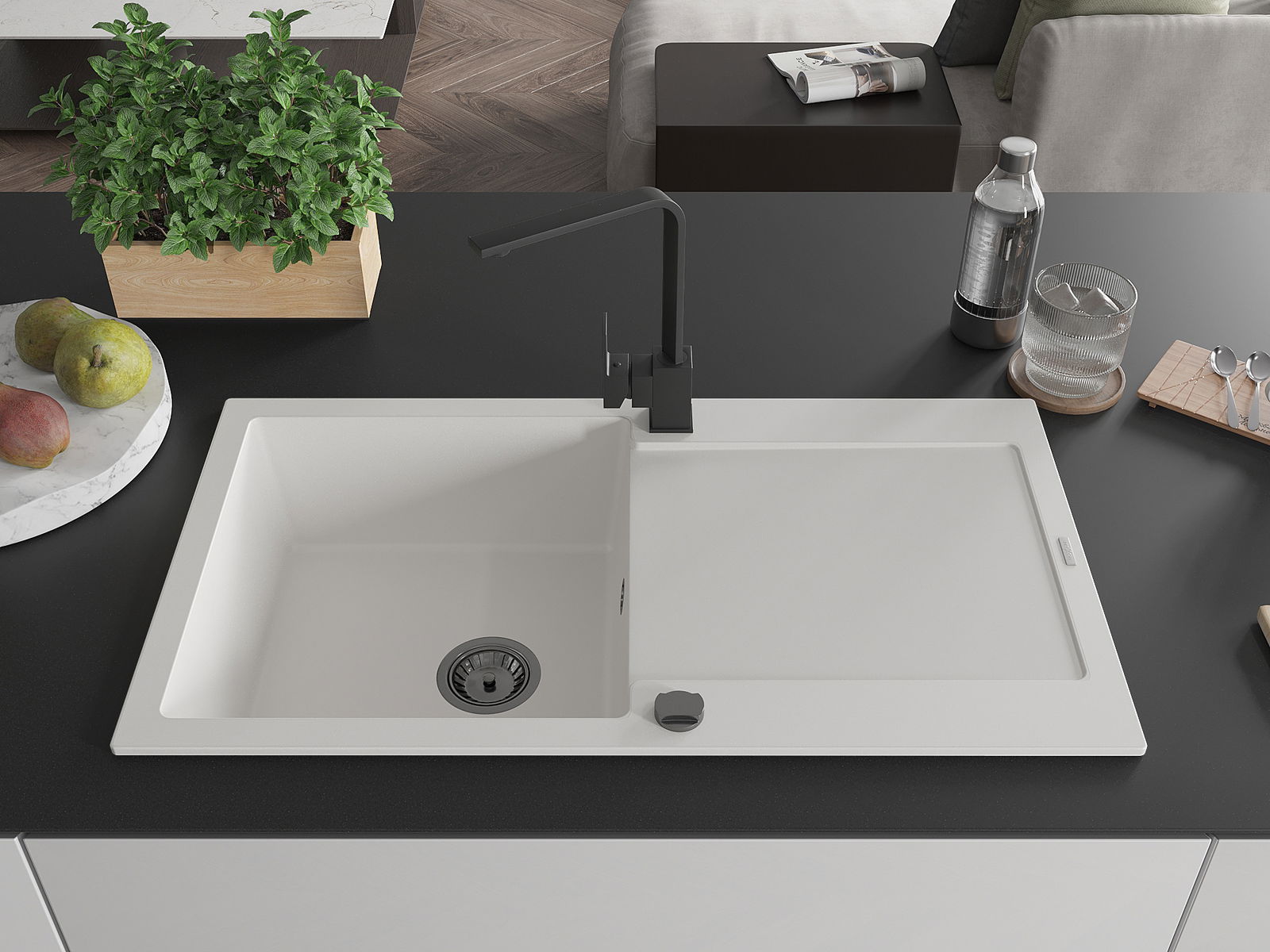Dřez byl vyroben z vysoce kvalitního granitu. Představuje elegantní a především praktický doplněk každé kuchyně, bez ohledu na její styl. Vysoká kvalita a trvanlivost granitu zajišťují dlouholeté používání.