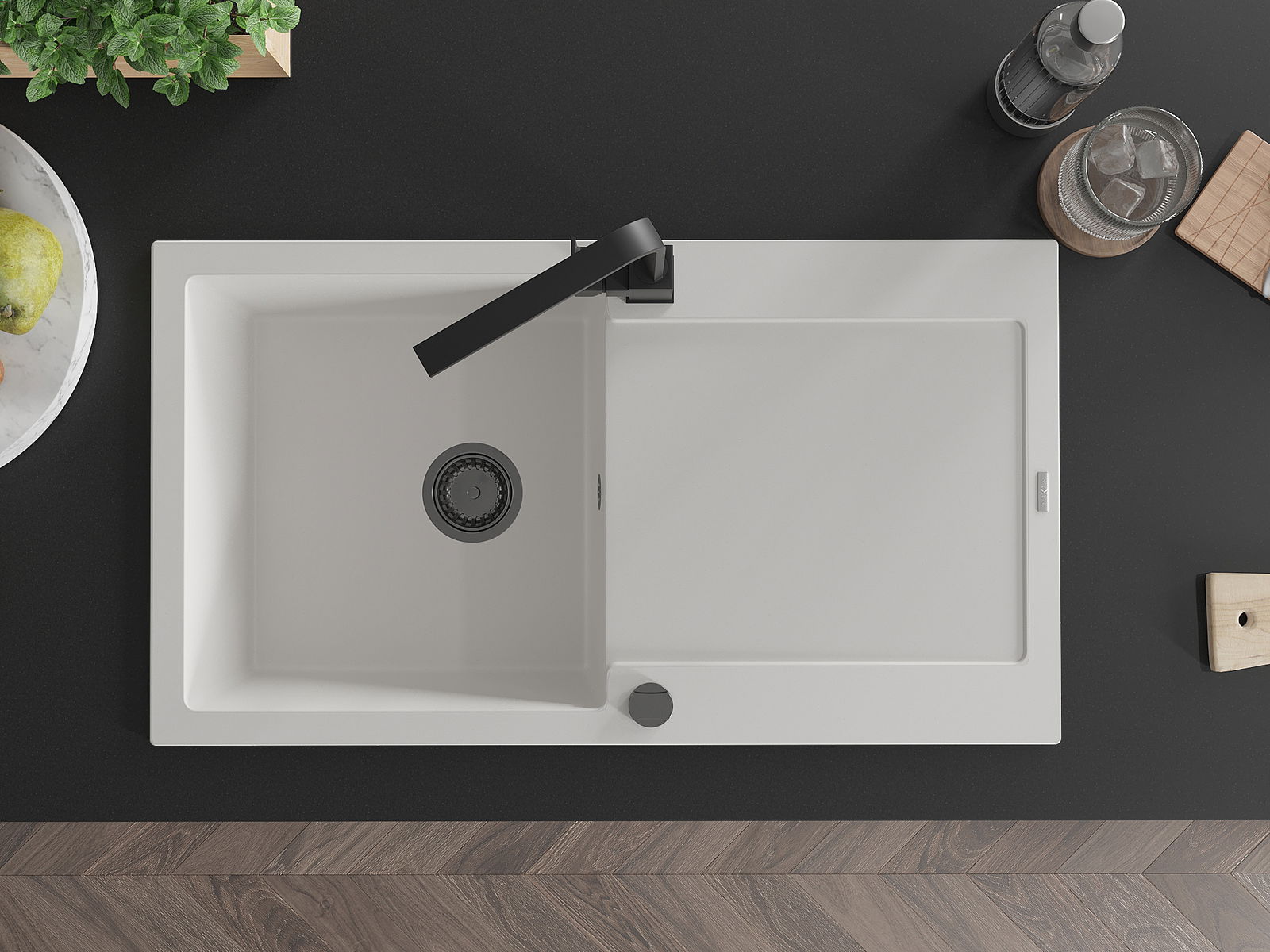 Povrch dřezu je odolný proti skvrnám a zabarvení, což usnadňuje jeho čištění a zachovává jeho barvu po dlouhou dobu používání. Estetický a praktický doplněk každé kuchyně.