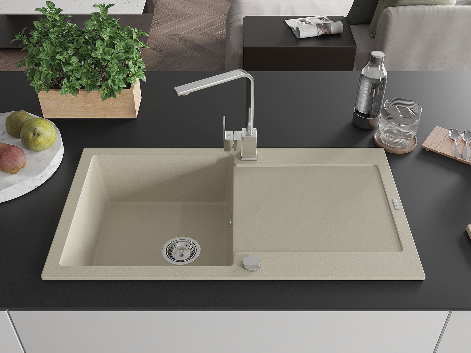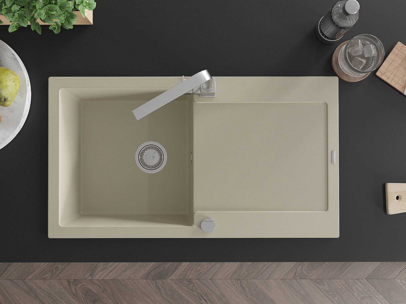 Dřez byl vyroben z vysoce kvalitního granitu. Představuje elegantní a především praktický doplněk každé kuchyně, bez ohledu na její styl. Vysoká kvalita a trvanlivost granitu zajišťují dlouholeté používání.