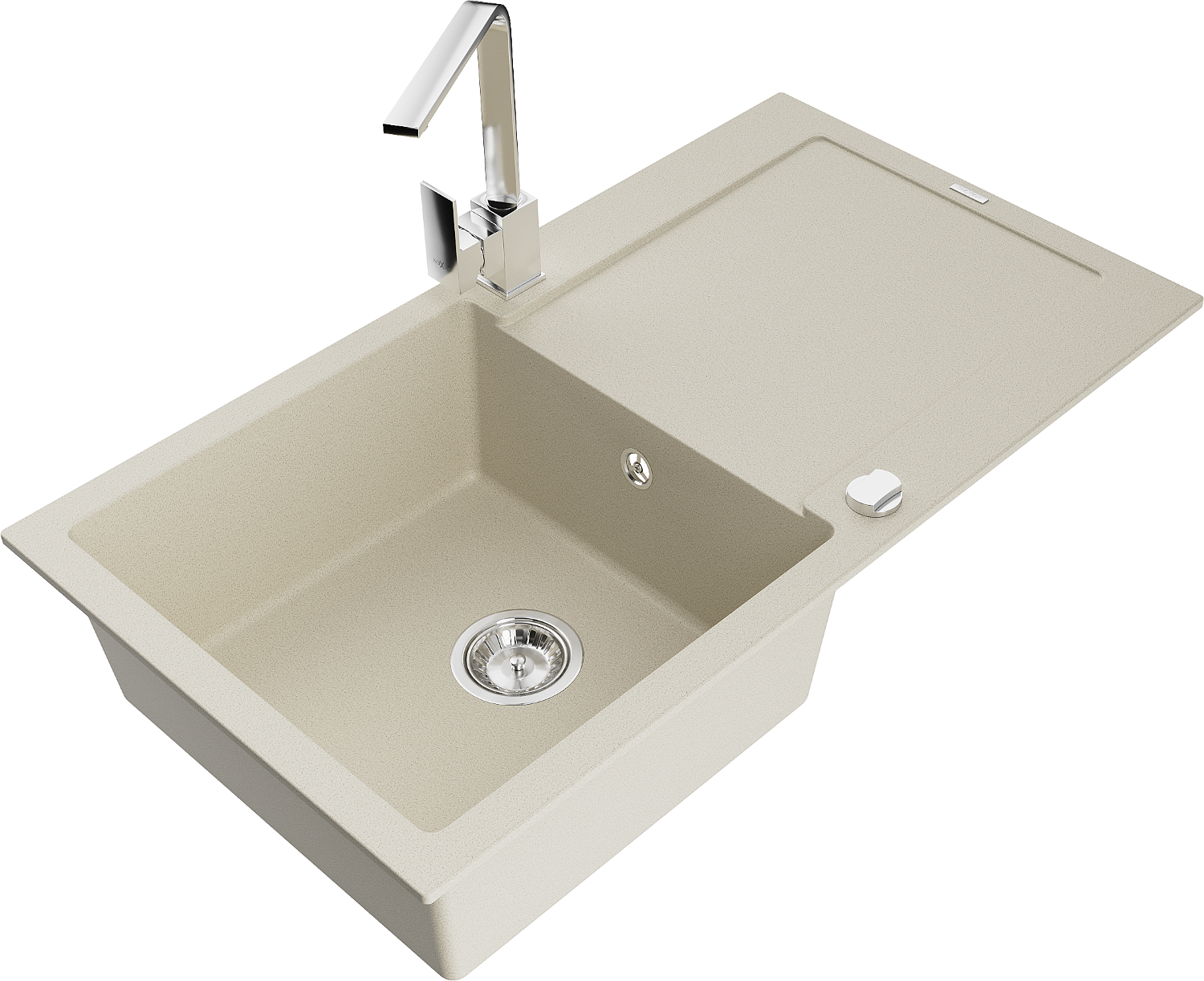 Mexen Leo granitový dřez 1-komorový s odkapávačem a kuchyňskou baterií Rita, béžový - 6501-69-670300-00