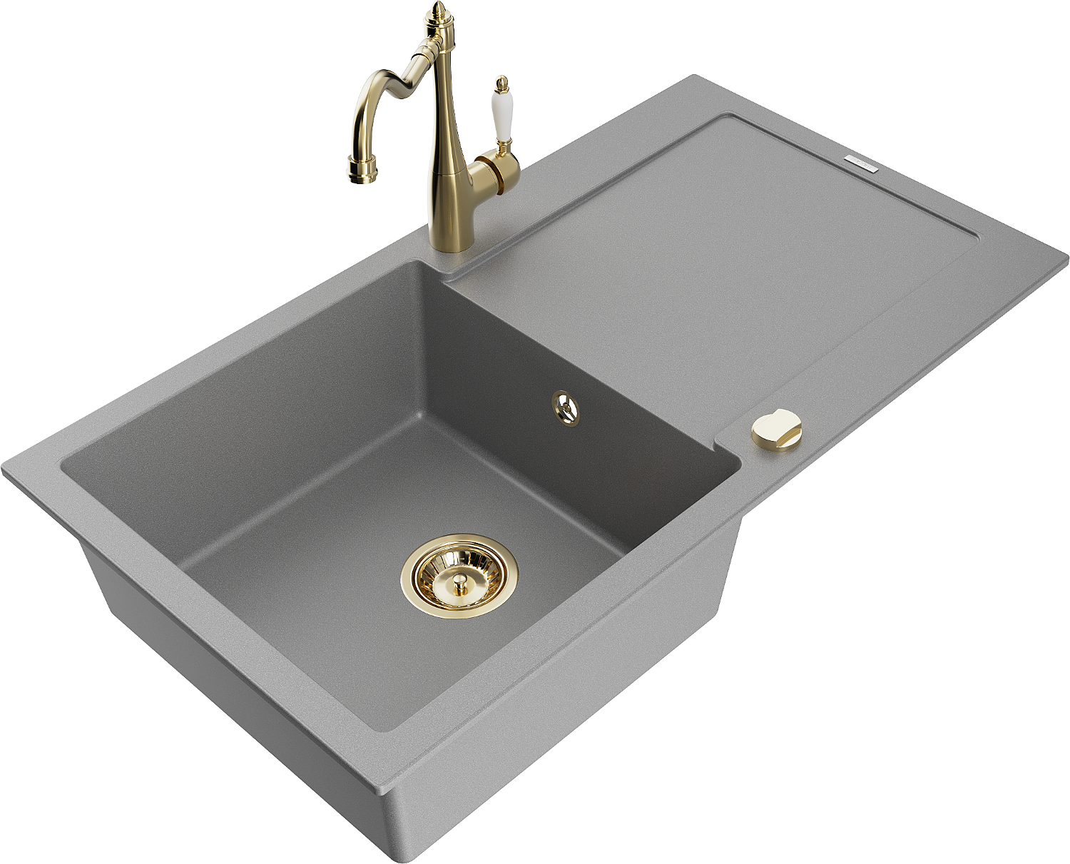 Mexen Leo granitový jednodřez s odkapávačem a kuchyňskou baterií Carla, šedý - 6501-71-670700-50
