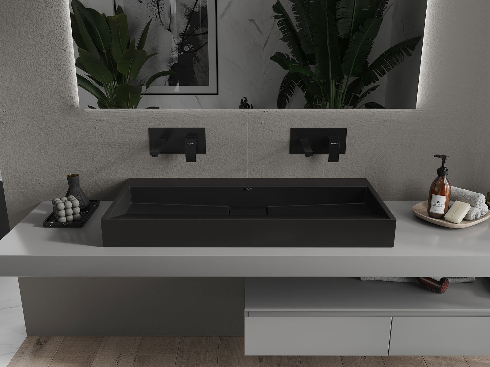 Mexen Ava umyvadlo na desku z konglomerátu B/O 100 x 46 cm, černá - 23011070