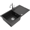 Mexen Leo granitový dřez 1-komorový s odkapávačem a kuchyňskou baterií Carla, černý skvrnitý - 6501-76-670700-00