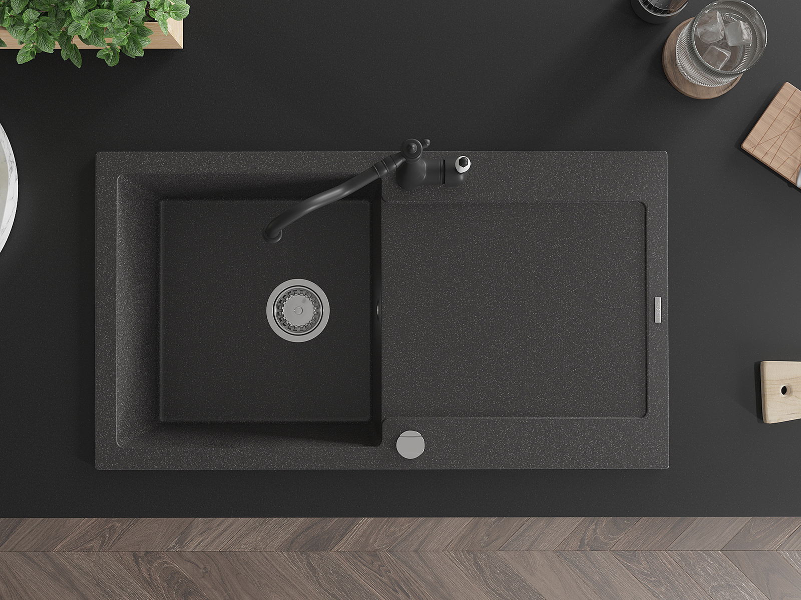 Dřez byl vyroben z vysoce kvalitního granitu. Představuje elegantní a především praktický doplněk každé kuchyně, bez ohledu na její styl. Vysoká kvalita a trvanlivost granitu zajišťují dlouholeté používání.
