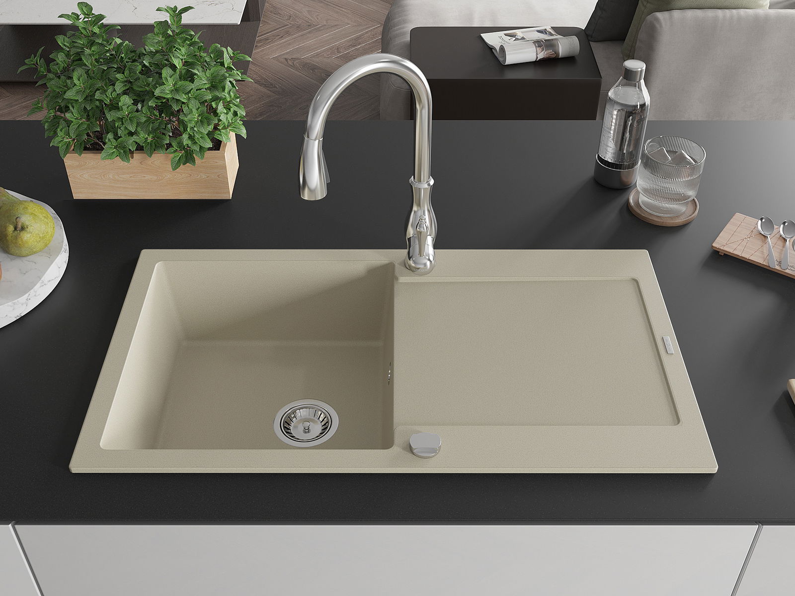 Dřez byl vyroben z vysoce kvalitního granitu. Představuje elegantní a především praktický doplněk každé kuchyně, bez ohledu na její styl. Vysoká kvalita a trvanlivost granitu zajišťují dlouholeté používání.