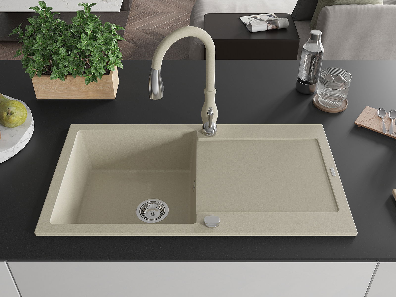 Dřez byl vyroben z vysoce kvalitního granitu. Představuje elegantní a především praktický doplněk každé kuchyně, bez ohledu na její styl. Vysoká kvalita a trvanlivost granitu zajišťují dlouholeté používání.
