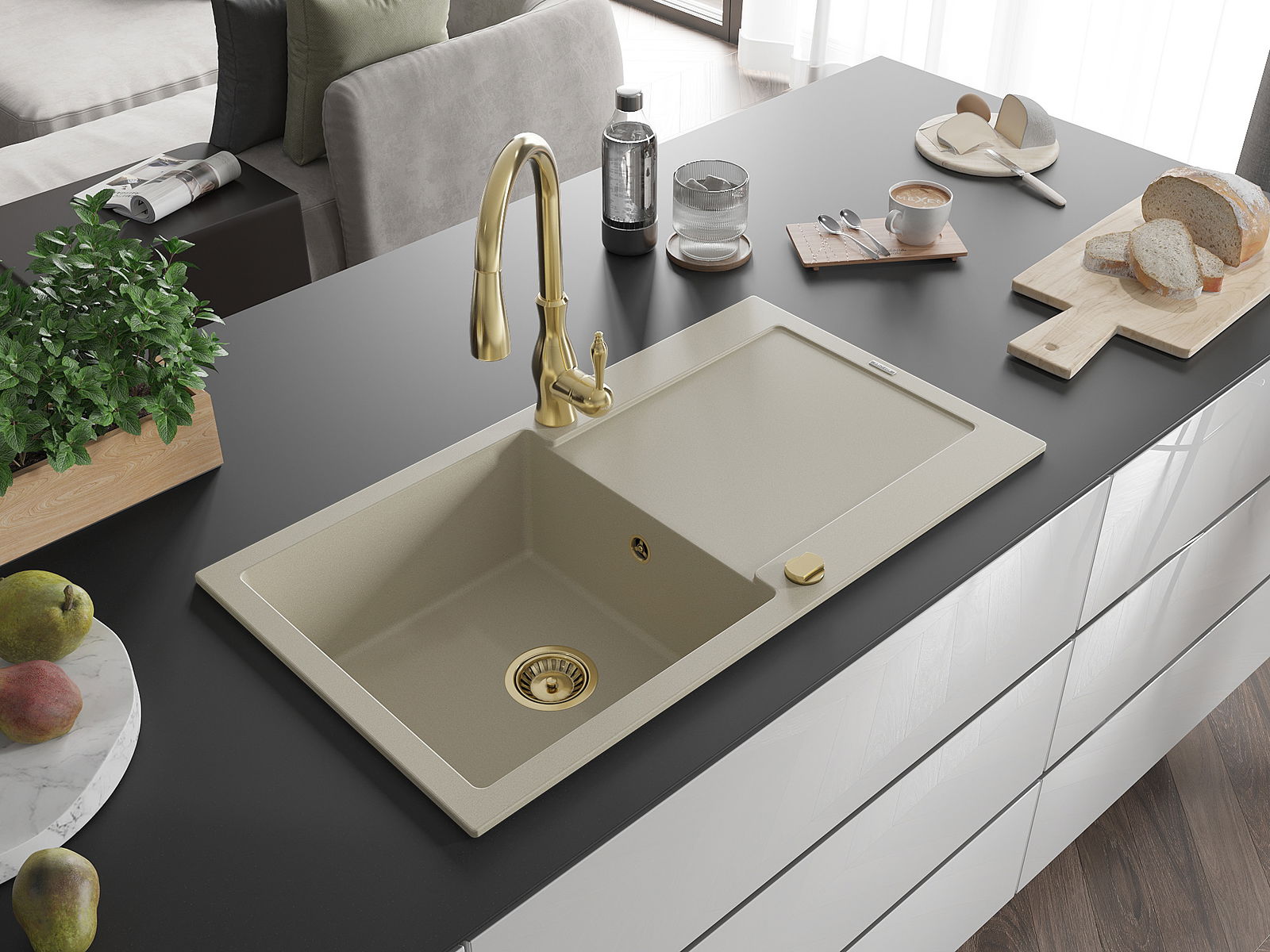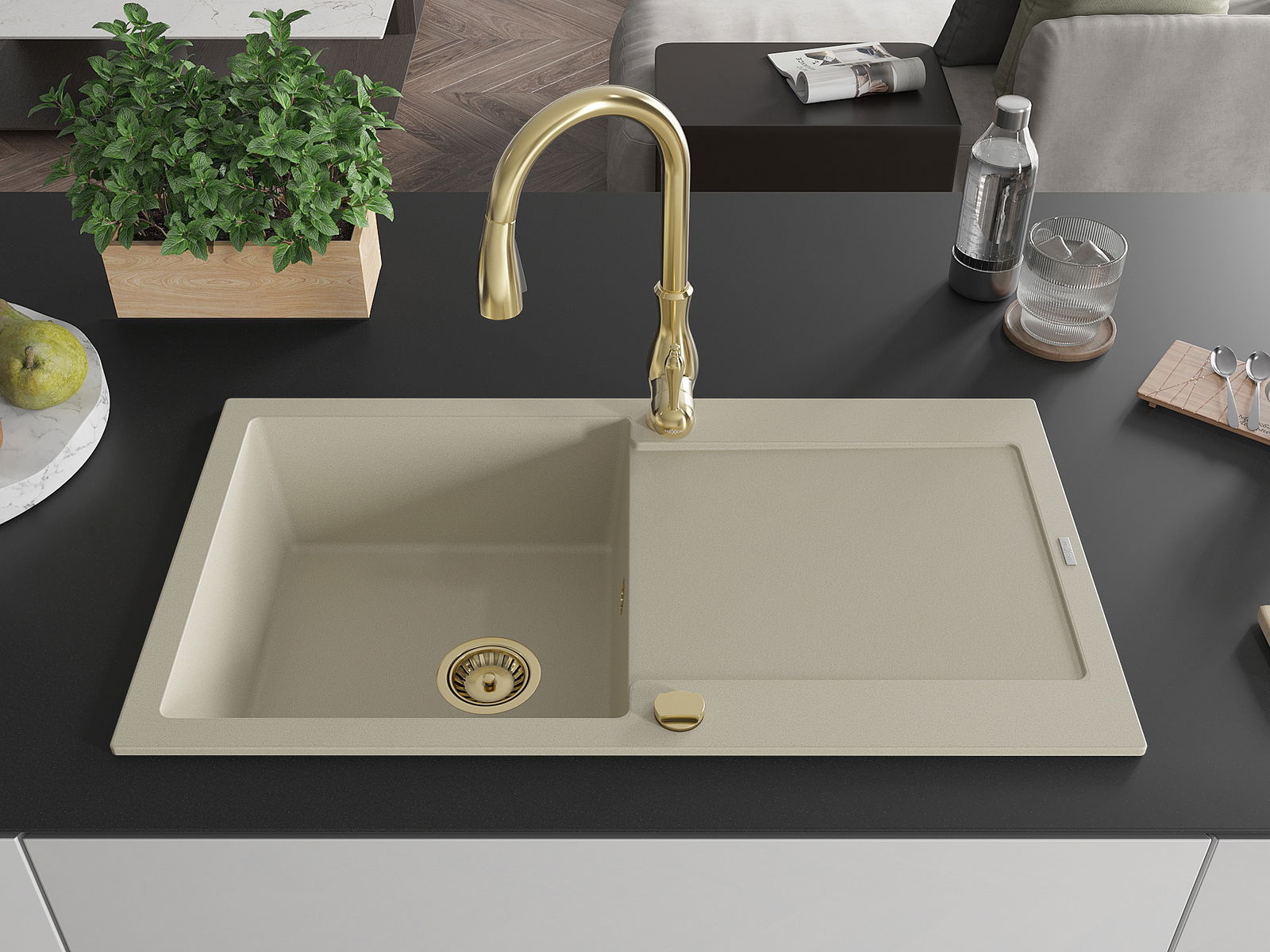 Dřez byl vyroben z vysoce kvalitního granitu. Představuje elegantní a především praktický doplněk každé kuchyně, bez ohledu na její styl. Vysoká kvalita a trvanlivost granitu zajišťují dlouholeté používání.