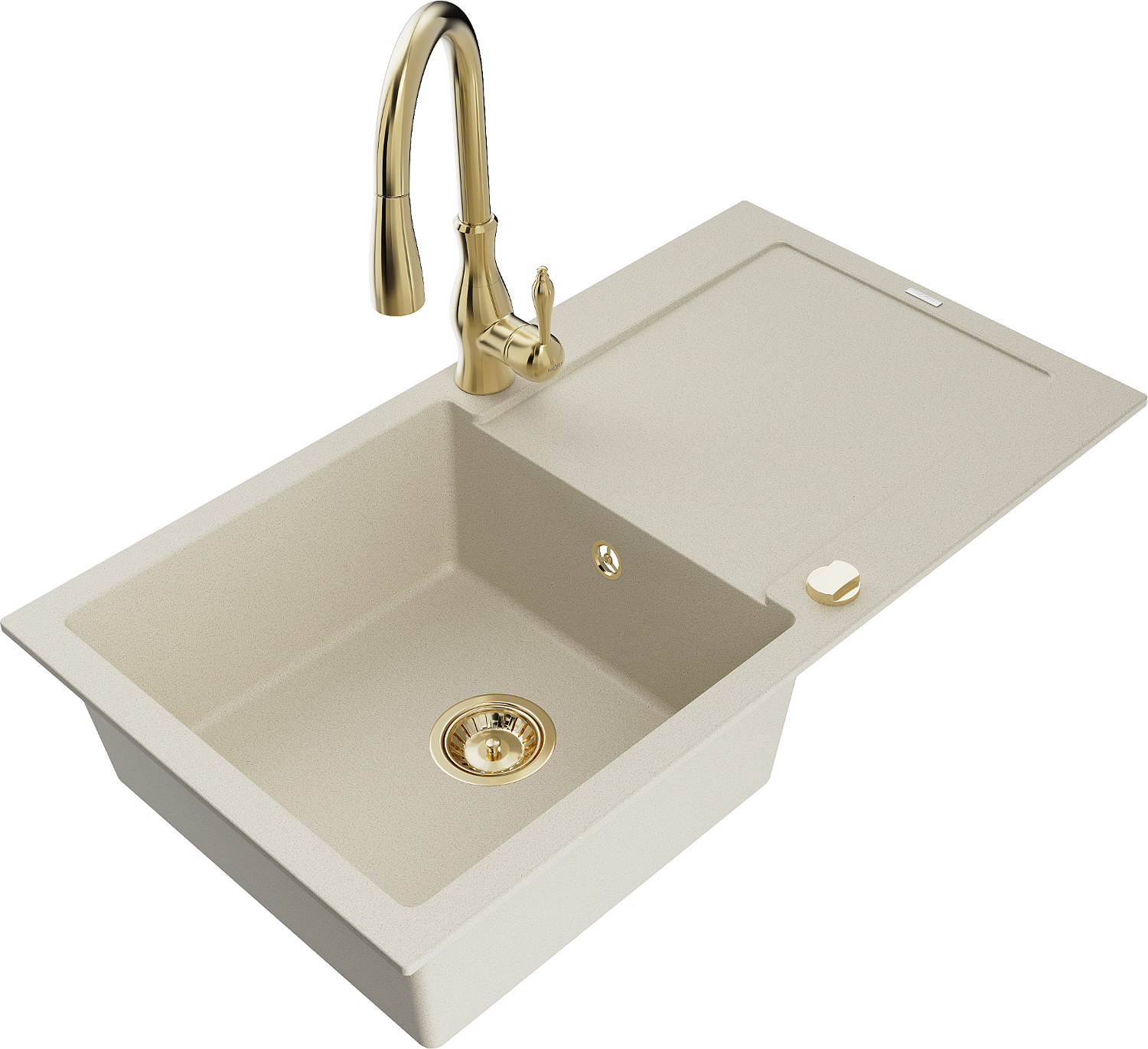 Mexen Leo granitový dřez jednokomorový s odkapávačem a kuchyňskou baterií Savita, béžový - 6501-69-672601-50